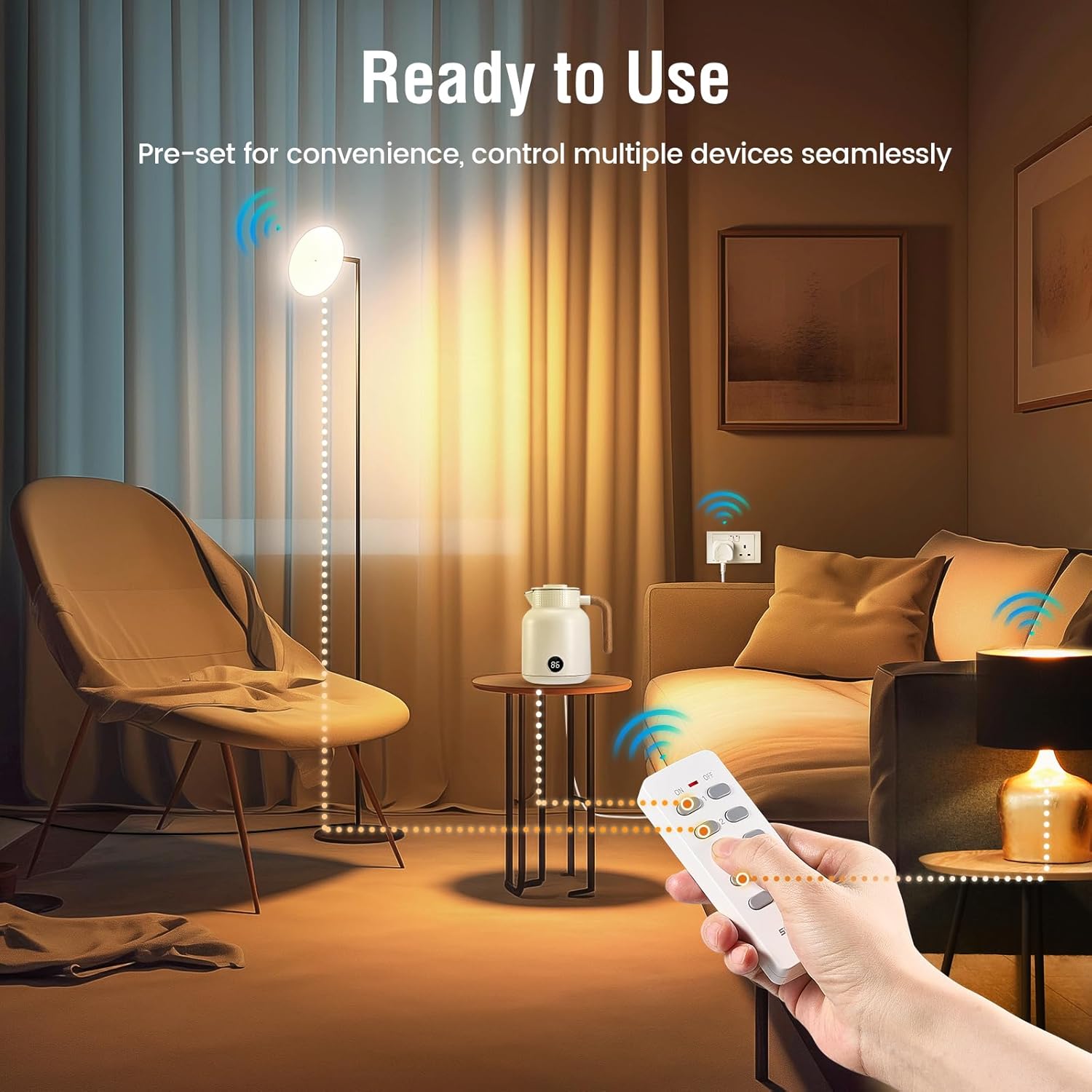 Helpful Indoor Solution for UK Homes: Remote control sockets can remotely turn ON/OFF some hard-to-reach appliances such as home lights and decorations, adding convenience to the living room, bedroom, kitchen, office, etc