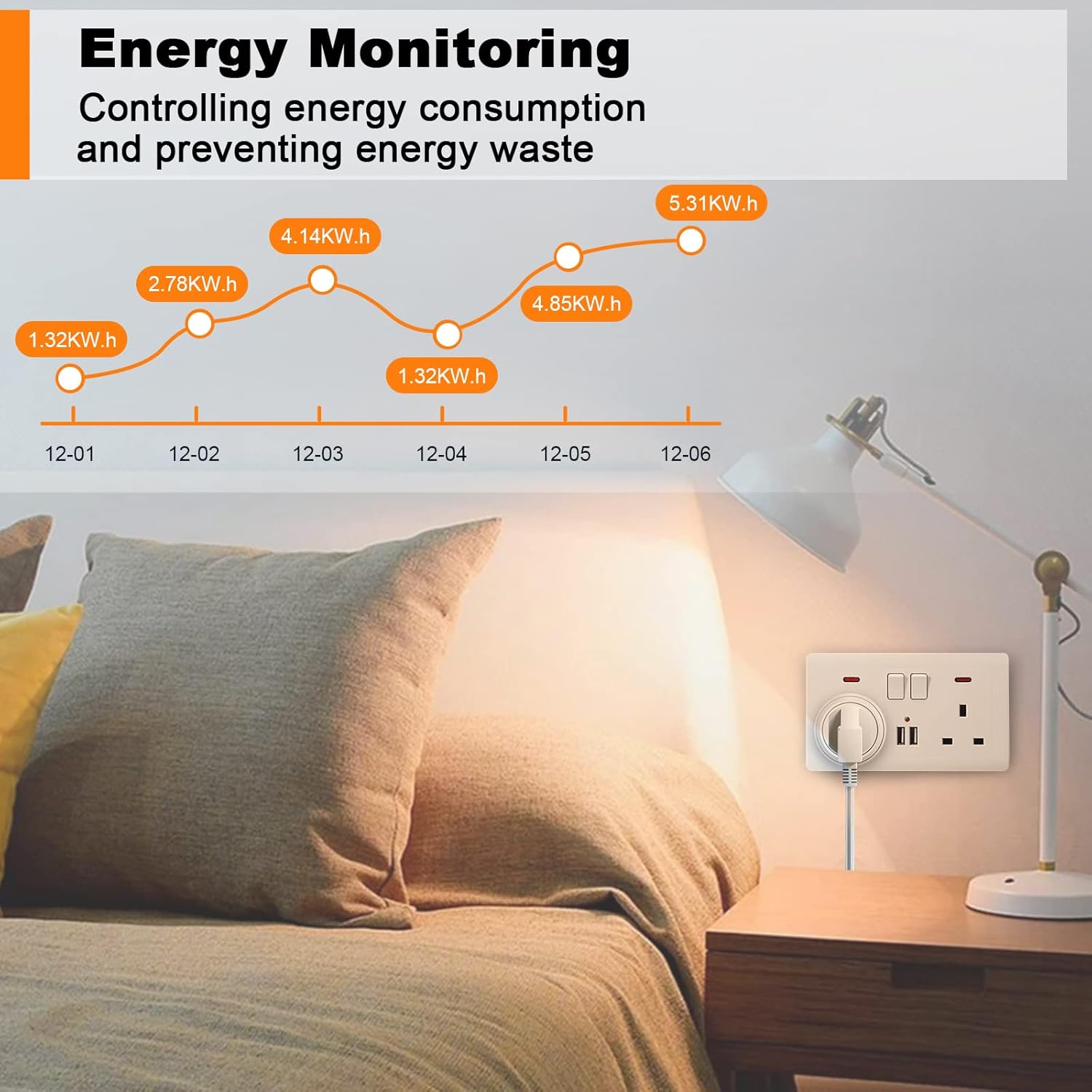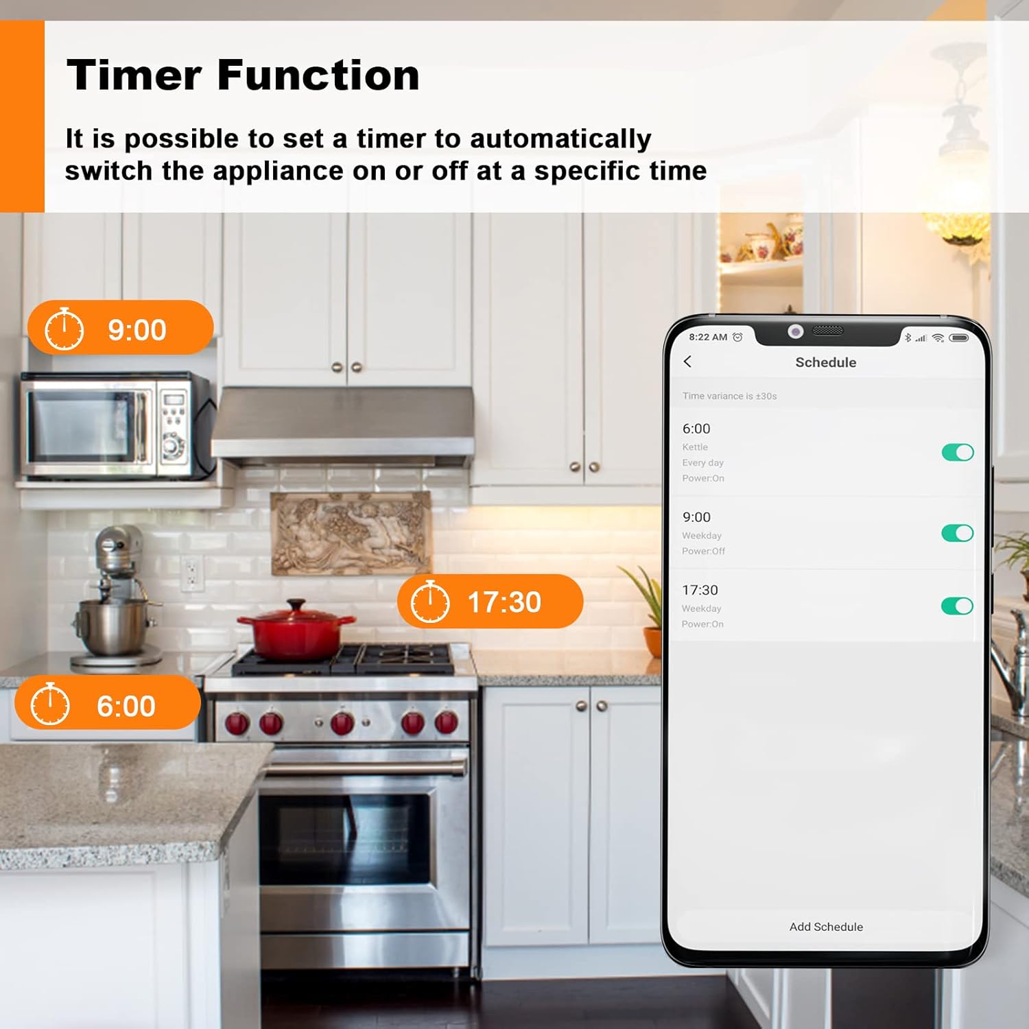 ⚡【Timer Plug Socket UK】— Set the time to turn on or off the appliances connected to the smart socket as needed, the connected appliances automatically run at set times. These functions avoid unnecessary standby times and save energy.