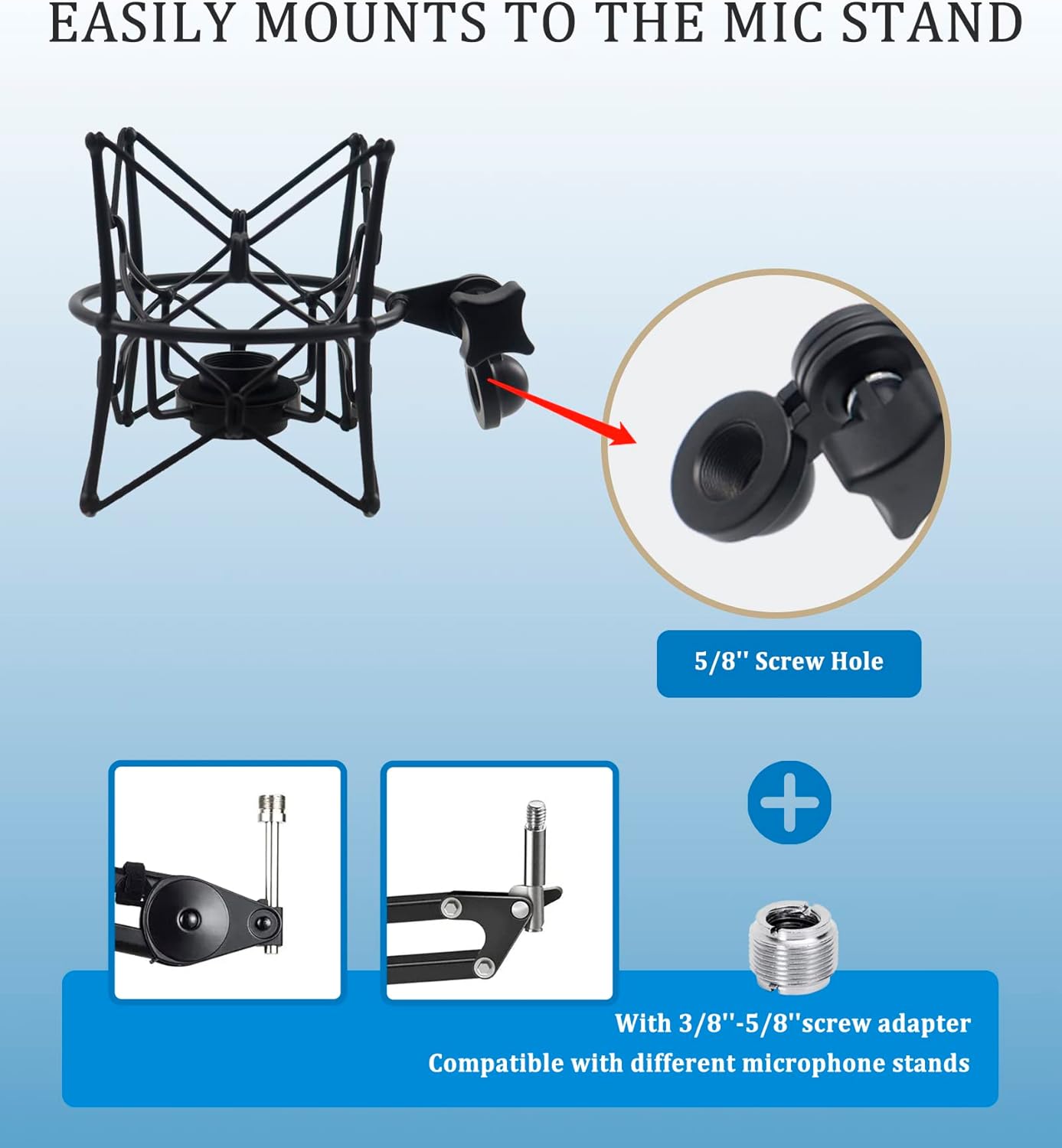 ♪[Adjustability] Features an angle adjustable locking knob, the shock-proof stand can be adjusted by 180°, which is convenient for various pickup directions of the microphone.And we provide 5/8’’-3/8’’ adaptor, which can be easily connected to any microphone boom or stand.
