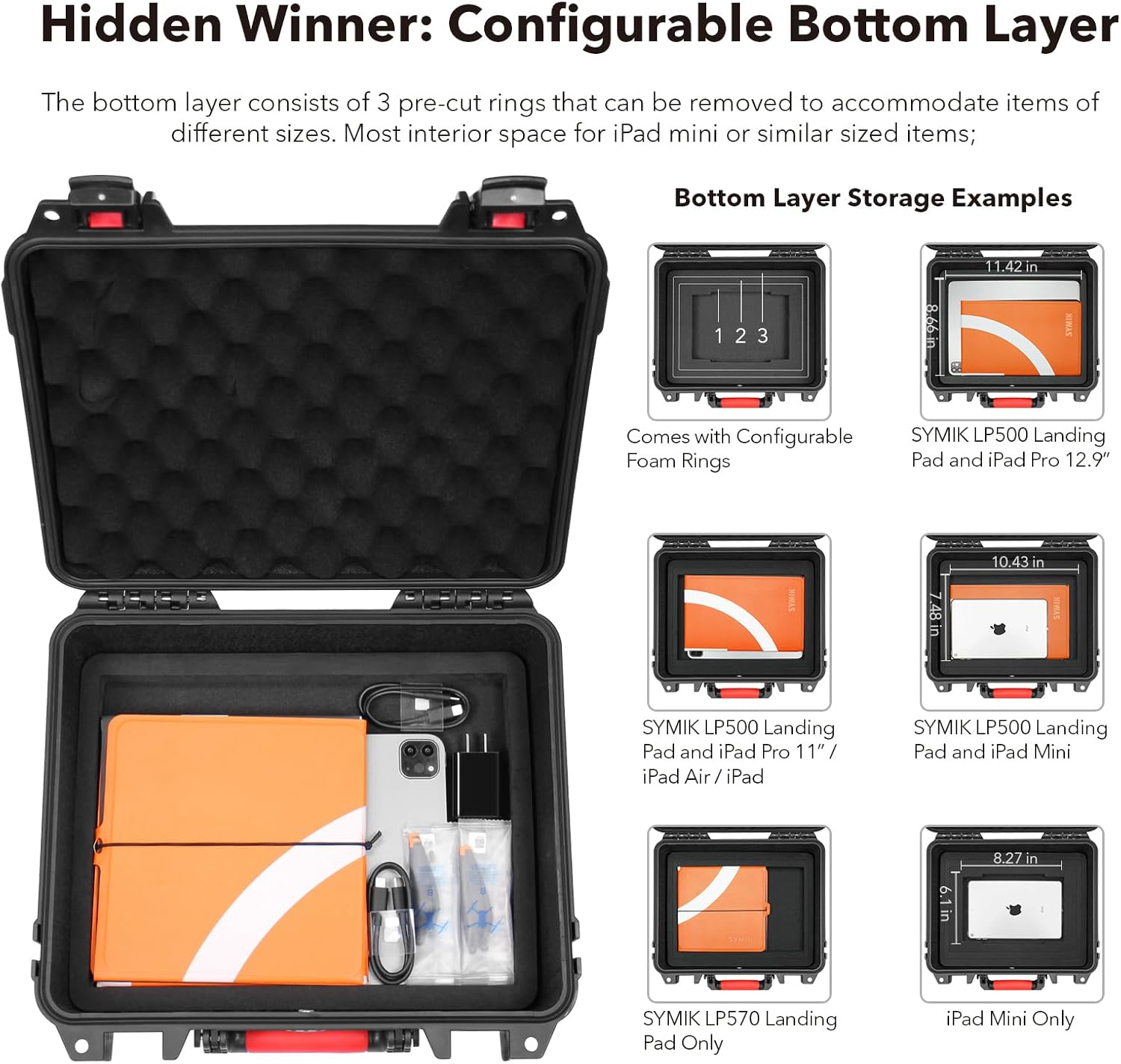 SYMIK P330-MMDL Mini 4 Pro Dual Layer Waterproof Hard Carrying Case for DJI Mini 4 Pro/Fly More Combo, Fits DJI RC2 /RC-N2 Remote, Tablet Holder, Landing Pad, Accessories