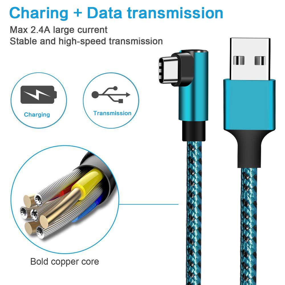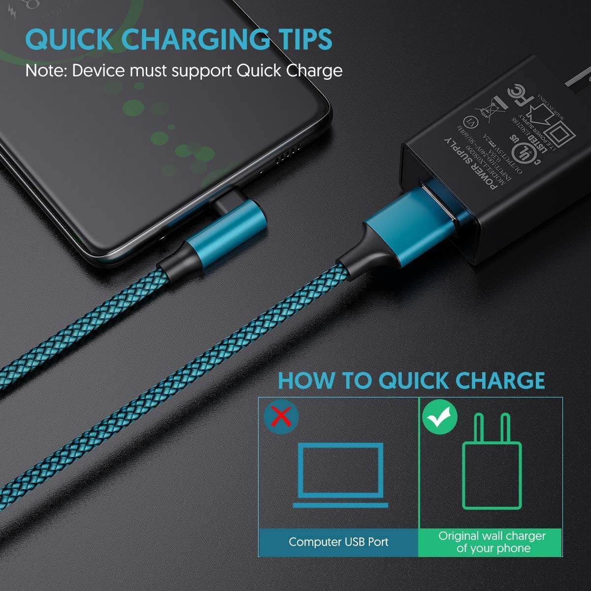 USB C Charger Cable 3Pack 3FT USB Type C Charger Cable Fast Charging Right Angle USB C Cable Nylon Braided for Samsung Galaxy S21 S20 S10 S9 S8 Note 10 9 8,Huawei P40 P30 P20,Xiaomi,Google Pixe