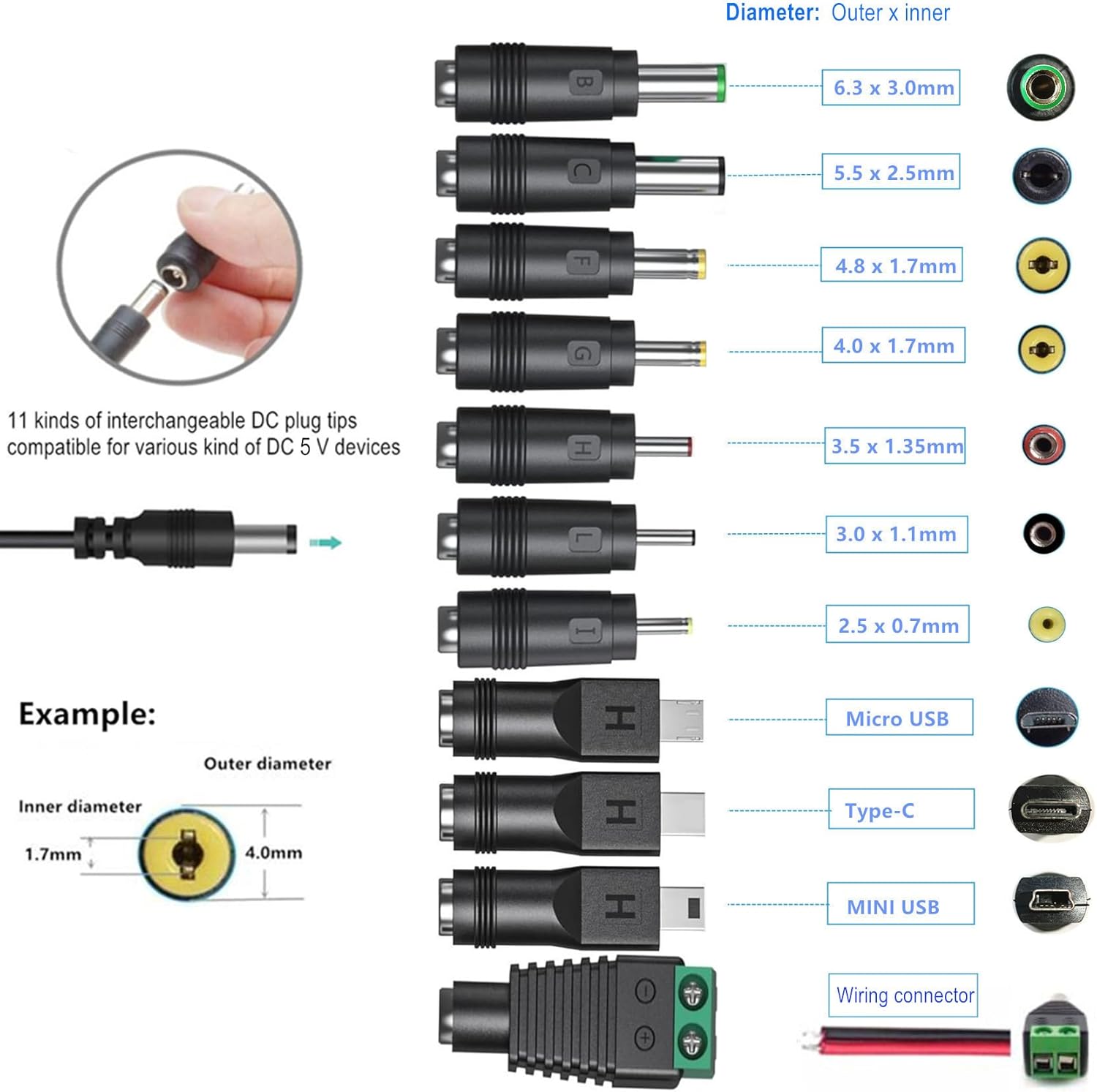 SZZKtech 5V AC Adapter DC5V 3A Power Supply charger With 11 DC Plug Tips AC230V to DC5V 3Amps 2.5A 2A 1.5A power adapter 5 volt ac dc Adapter for CCTV Camera Baby Monitor Graco Swing TV box
