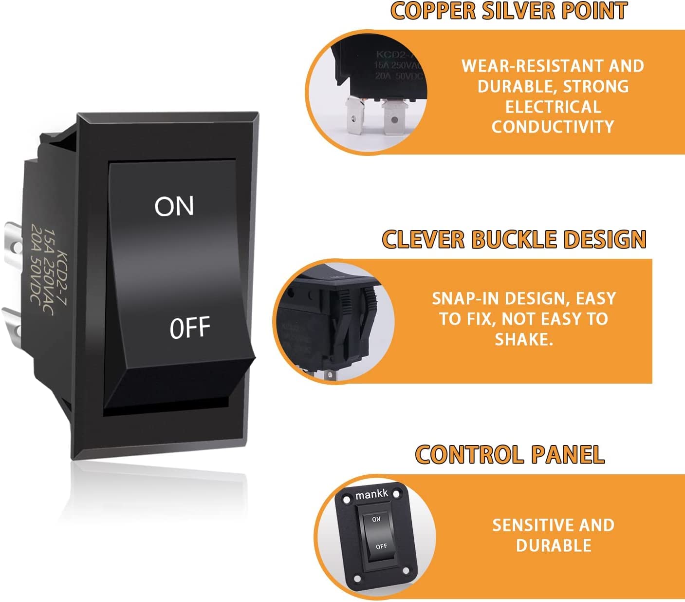 Products are suitable for 15A 250VAC 20A50VDC.Note: Please turn off the power before installation.