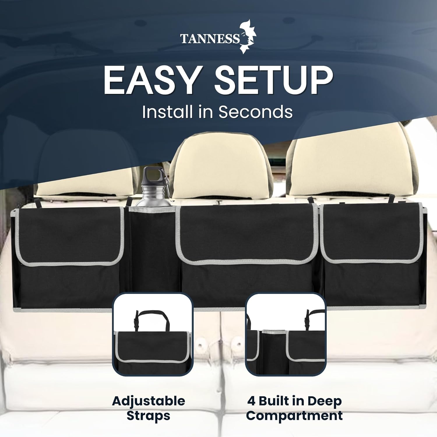 The TANNESS Car Boot Seat Organiser is a game-changer for maintaining a clutter-free and organized car interior. Its adjustable straps ensure a secure fit in any vehicle, while the medium-large interior provides ample space for various essentials. The foldable cargo net adds a layer of convenience, securely holding items during travel. Not only does it excel in functionality, but the seat back protectors also shield against scuffs and stains, preserving the car seats. The travel-friendly design makes it a versatile companion for road trips, and the durable build guarantees long-lasting use. The adjustable straps offer a universal fit, preventing any shifting during sudden stops or turns. Overall, this organiser is a must-have for those seeking a reliable and practical solution to enhance car interior organization. Highly recommended for its convenience and quality! ðð