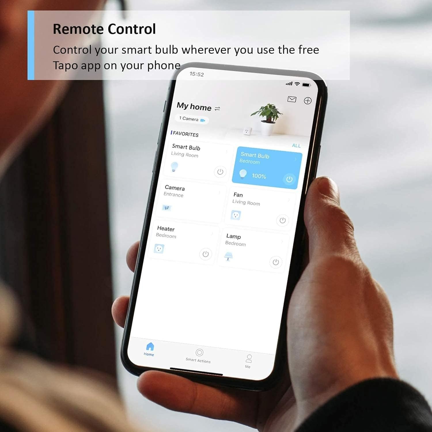 Voice Control- Tapo smart bulb works with Amazon Alexa and Google Assistant for Voice Control; Manage the lights with your voice commands such as “Hi, Alexa, turn on the light” or “Hey, Google, dim my bedroom lights