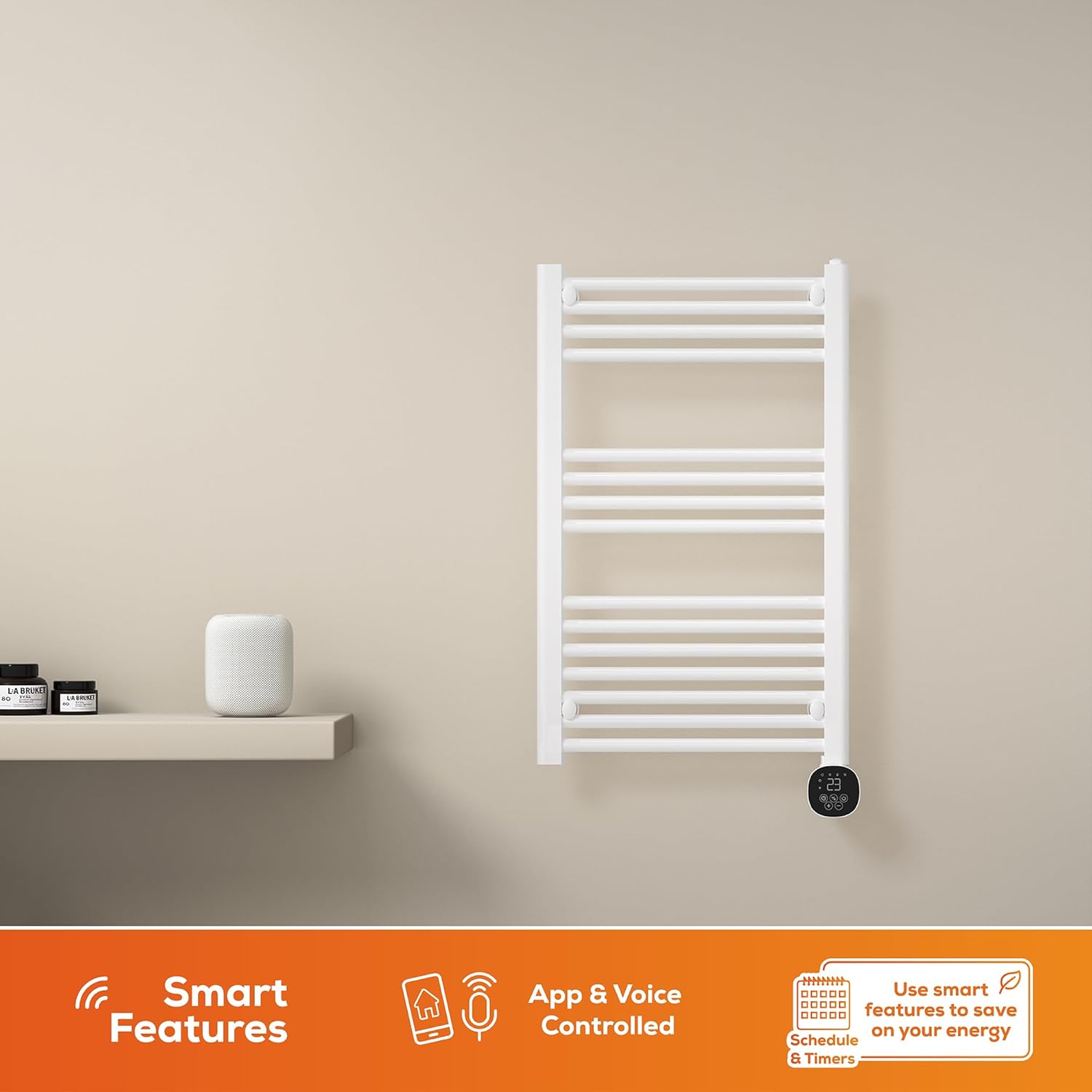 Stylish & Built to Last. Crafted from durable materials with a sleek, modern finish, this electric towel radiator is made to withstand daily use while adding a refined touch to your bathroom. The integrated display screen adds a contemporary edge, combining style with smart functionality.