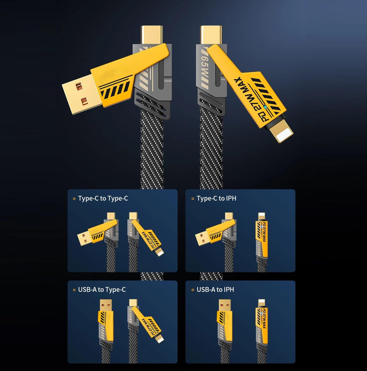 TECHFUN 4 in 1 Multi Charging Cable, 120CM [65W] Fast Charging – Compatible with iPhone 16/15/14/13/12/11 Pro Max, Airpods, iWatch, iPad, MacBook, Samsung S24/S23/S22 & Google