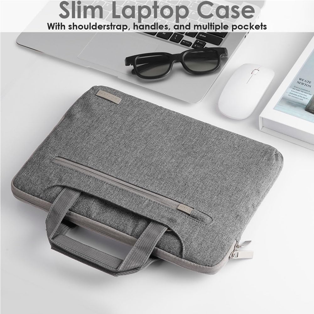 TECHGEAR Case for 12.8″ – 13.6″ Laptops, Portable Multi-function Laptop Case with Adjustable Shoulder Strap, Luggage Strap & Suppressible Handles, Portable Sleeve Organiser Case Cover + Pockets GREY