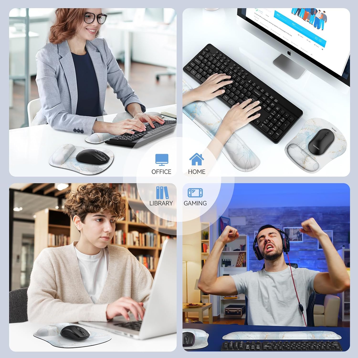 TECKNET Wrist Rest Mat, Keyboard and Mouse Wrist Support Pad Set, Comfortable Memory Foam Mouse Mat with Wrist Cushion Support, Anti-Slip Ergonomic Mouse Pad for Computer Laptop Working Gaming