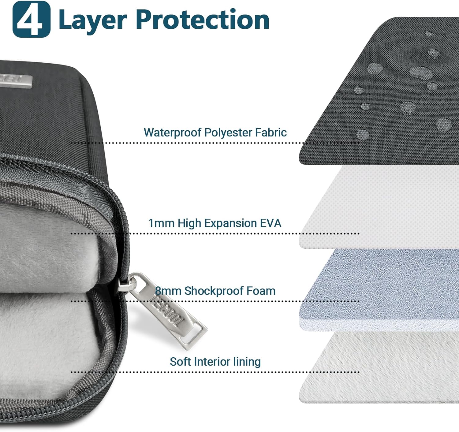 Having recently invested in a new 14-inch laptop, I wanted to ensure it stayed in mint condition, especially during my daily commutes and travels. Enter the TECOOL Protective Laptop Sleeve, which has quickly become my device’s best friend.Fit: The sleeve snugly houses my 14-inch laptop. It’s neither too tight nor too loose, providing easy access while ensuring security.Protection: The padded interior cushions my laptop from everyday bumps and knocks. I’ve accidentally dropped my bag once (oops!), but thanks to this sleeve, my laptop emerged unscathed.Material & Build: The exterior feels durable, promising longevity, while the stitching is clean and robust. I have a feeling this sleeve will last as long as my laptop does, if not longer.Water-resistance: I got caught in a light drizzle once, and to my relief, the water beads slid right off, keeping the insides dry.Design: It’s sleek and minimalist, which I appreciate. It doesn’t scream “expensive laptop inside,” but rather adds a touch of professional elegance to my overall look.Functionality: The additional pocket is handy for keeping chargers, pens, or other small items. It’s a thoughtful touch, saving me from rummaging through my bag for essentials.In a nutshell, the TECOOL Protective Laptop Sleeve offers the perfect balance between style and function. It not only protects my laptop but does so with flair. If you’re seeking a combination of aesthetics, protection, and value for money, I wholeheartedly recommend this product. Kudos, TECOOL!