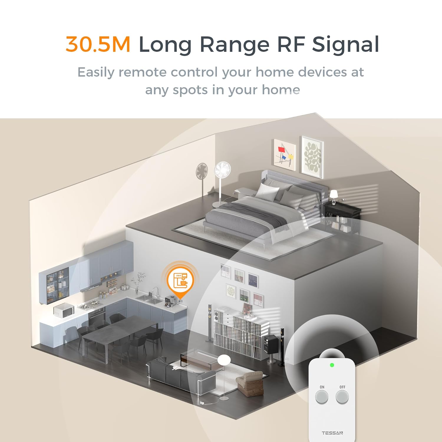 Compact Size: The compact design of the TESSAN remote control plugs (5.2 x 5.2 x 3 cm) makes it easy to use when wall sockets are used at the same time without blocking neighbouring sockets, applies to light strings, table lamps, etc
