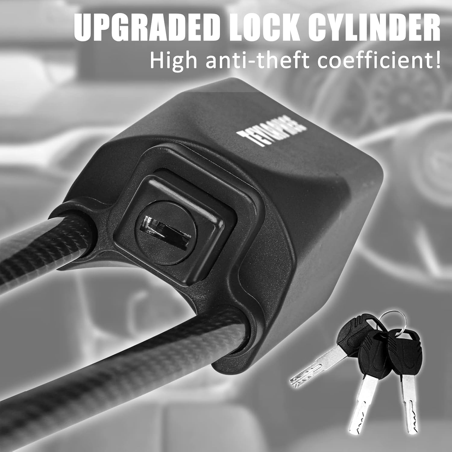🔐【UPGRADED MATERIALS】The inner high-performance braided steel cable provides excellent resistance to cutting and sawing. The steel cable is wrapped in scratch-resistant material to avoid scratching the steering wheel