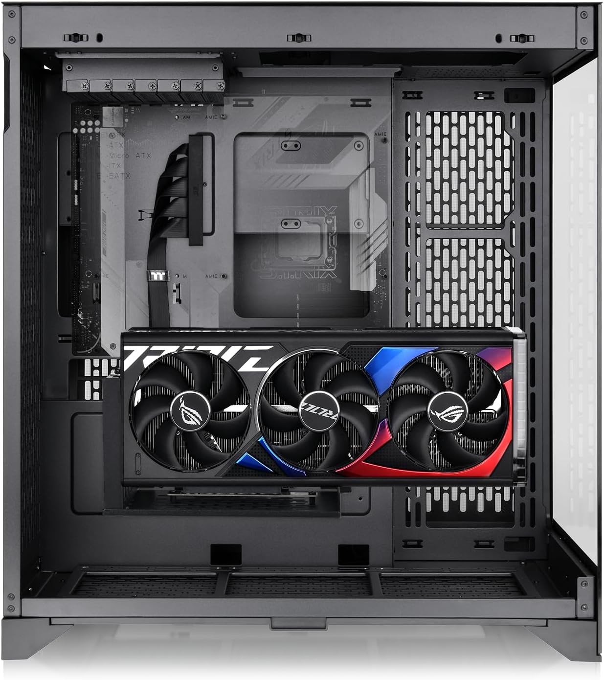 Mir hat an dem Gehäuse die freischwebende Grafikkarte sehr gefallen, sodass auch hinten bis zu 3 140iger Lüfter eingebaut werden können. Zusätzlich finde ich die Idee des gedrehten Mainboards super und das damit die Anschlüsse oben im Case versteckt sind. Damit hat man weniger Kabelsalat hinter dem Case.Qualitativ ist es sauber verarbeitet und mit der zusätzlich mit enthaltenden Glasfront kann man sich ein super showcase aufbauen.Auch das Stecksystem der Seitenteile funktioniert prima und macht das nervige aufschrauben überflüssig.Durch die freie Grafikkarte und Luftzufuhr von unten wird meine RX6750XT nicht wärmer als 50 grad. Unter Volllast.Mein bisher bestes Case von Thermaltake.