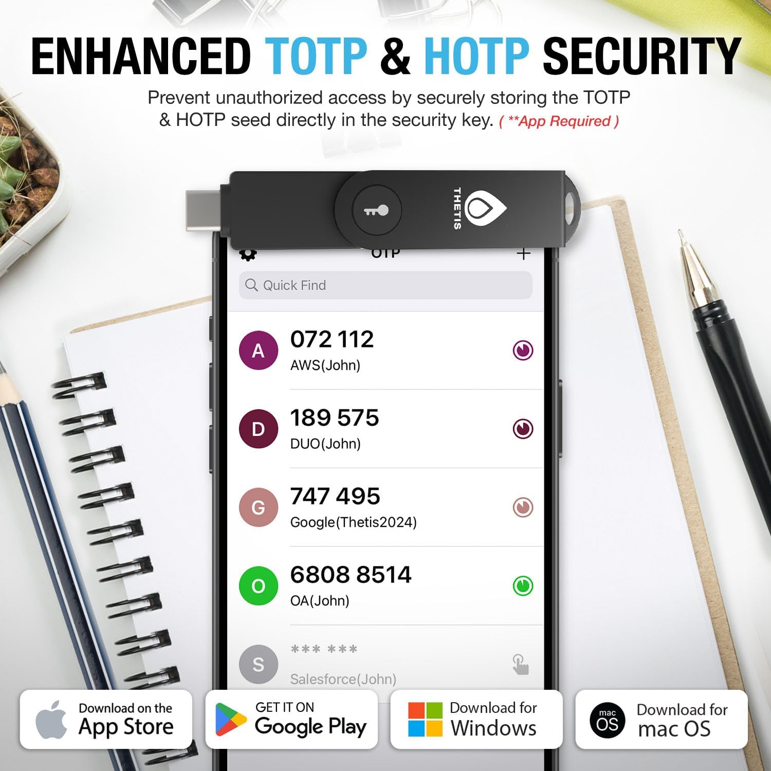 Thetis Pro-C FIDO2 Security Key Passkey Device with USB C & NFC, TOTP/HOTP Authenticator APP, FIDO 2.0 Two Factor Authentication 2FA MFA, Works with Windows/macOS/Linux/Gmail/Facebook/Dropbox/GitHub