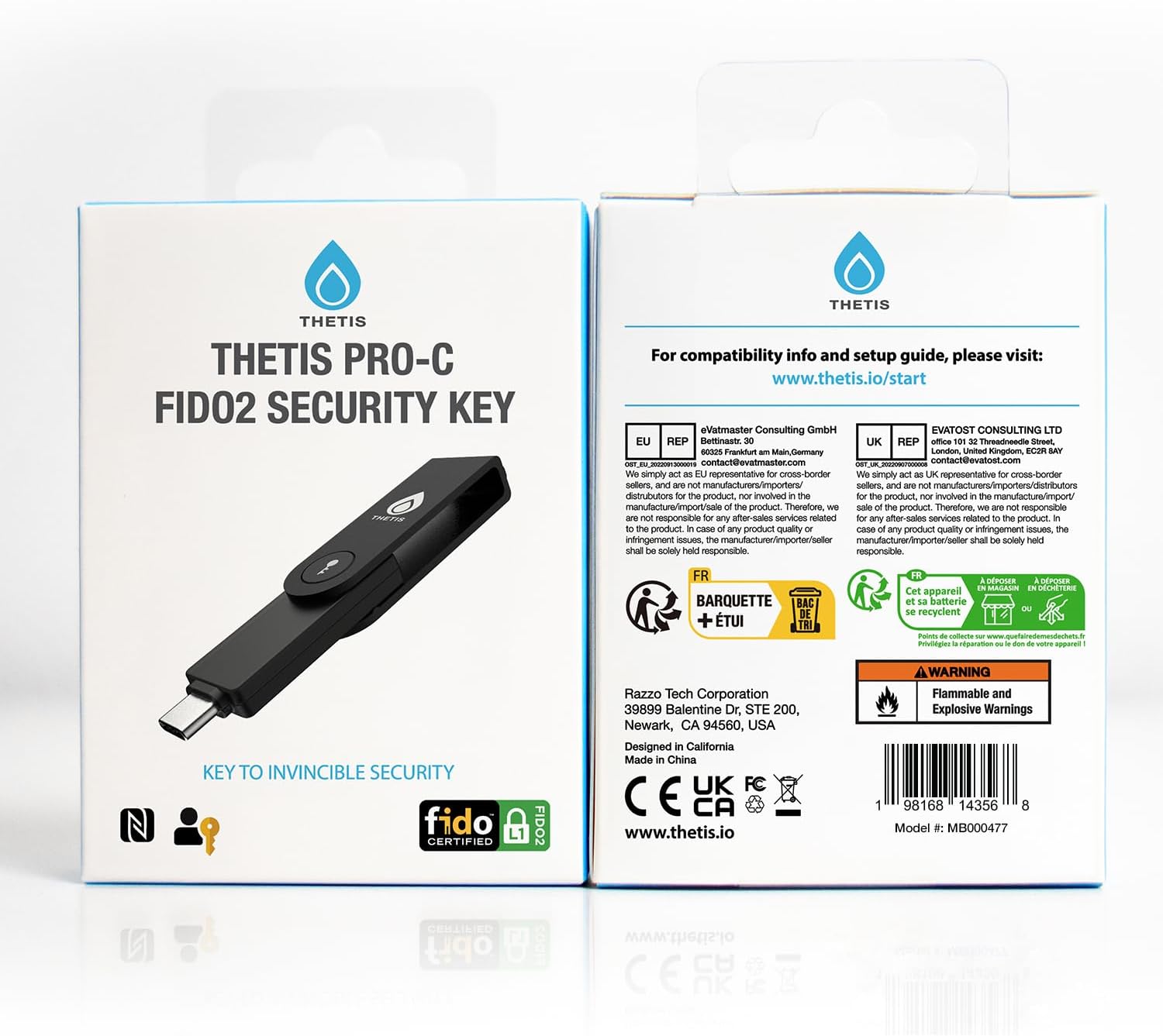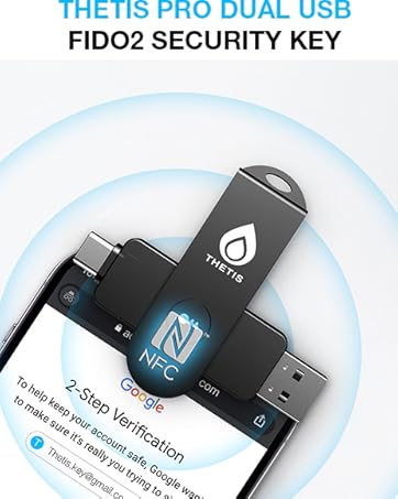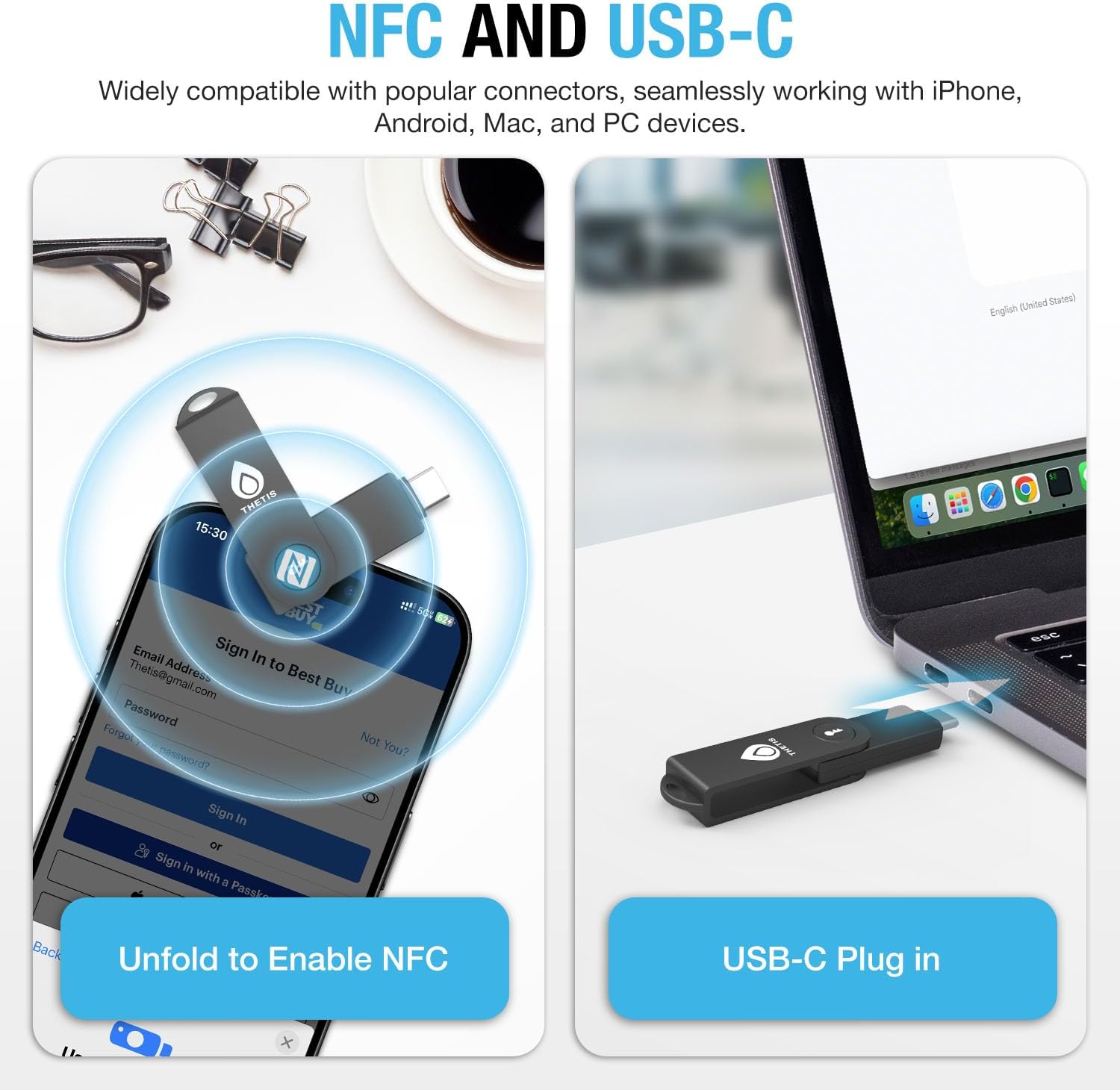 THETIS Pro FIDO2 Security Key with USB A & USB C & NFC Enable, Passkey compatible.