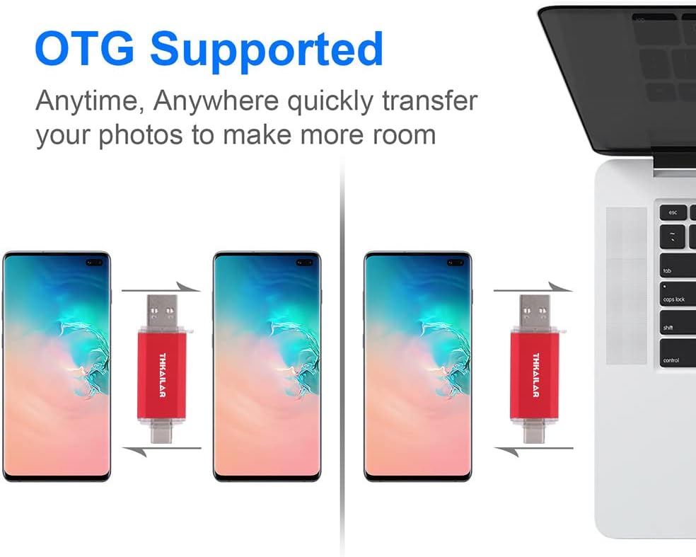 THKAILAR 2 in1 USB flash drive not only free up storage space for your phone, but also allow you to easily share data between various devices.