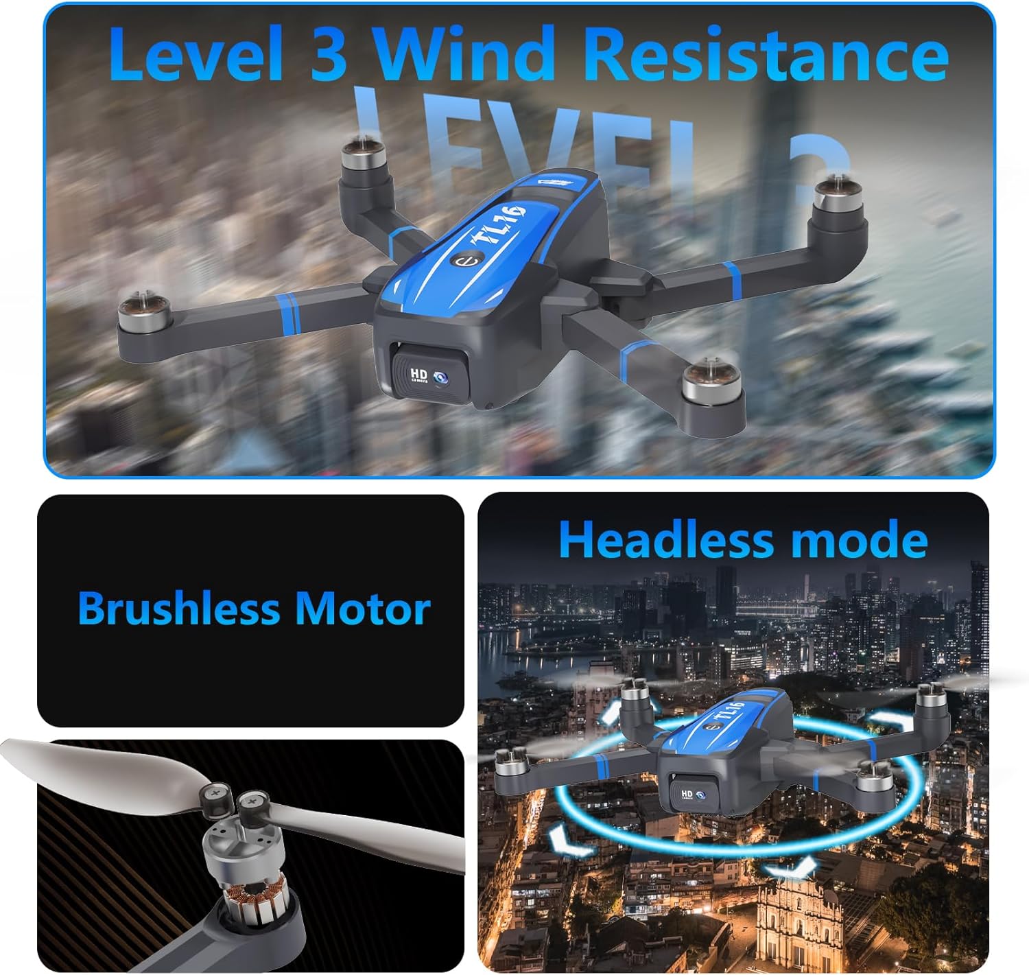 5 reviews for Toladrone TL16 Drones with Camera 4K for Adults, Brushless Motor Drone for Beginners 90ยฐ Motorised Adjustable Lens Gesture Control Headless Mode Foldable Quadcopter, Blue