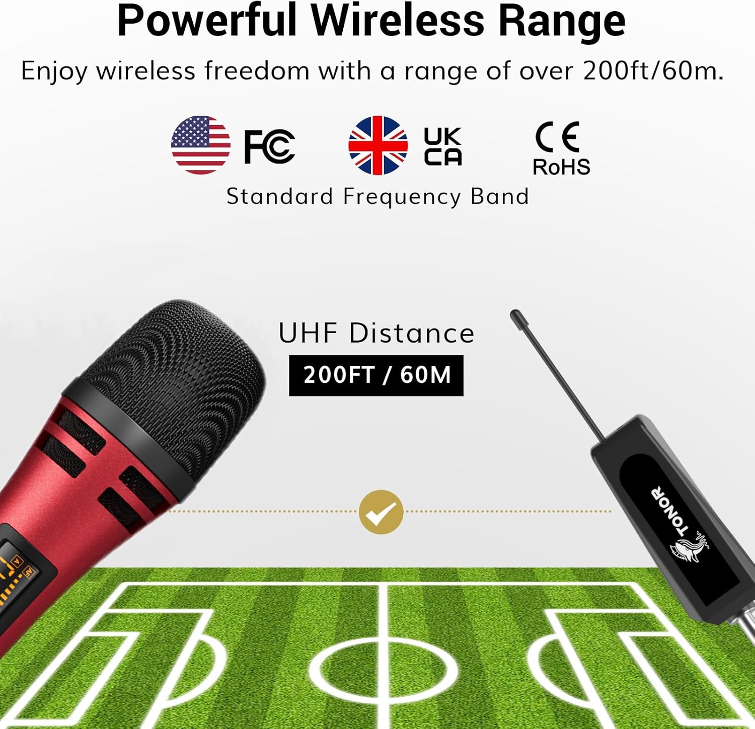 Wide Transmission Range: Enjoy a 200 ft. operating range with our cordless mic, ideal for indoor/outdoor events like karaoke, weddings, meetings, or lectures, ensuring freedom and versatility in every performance