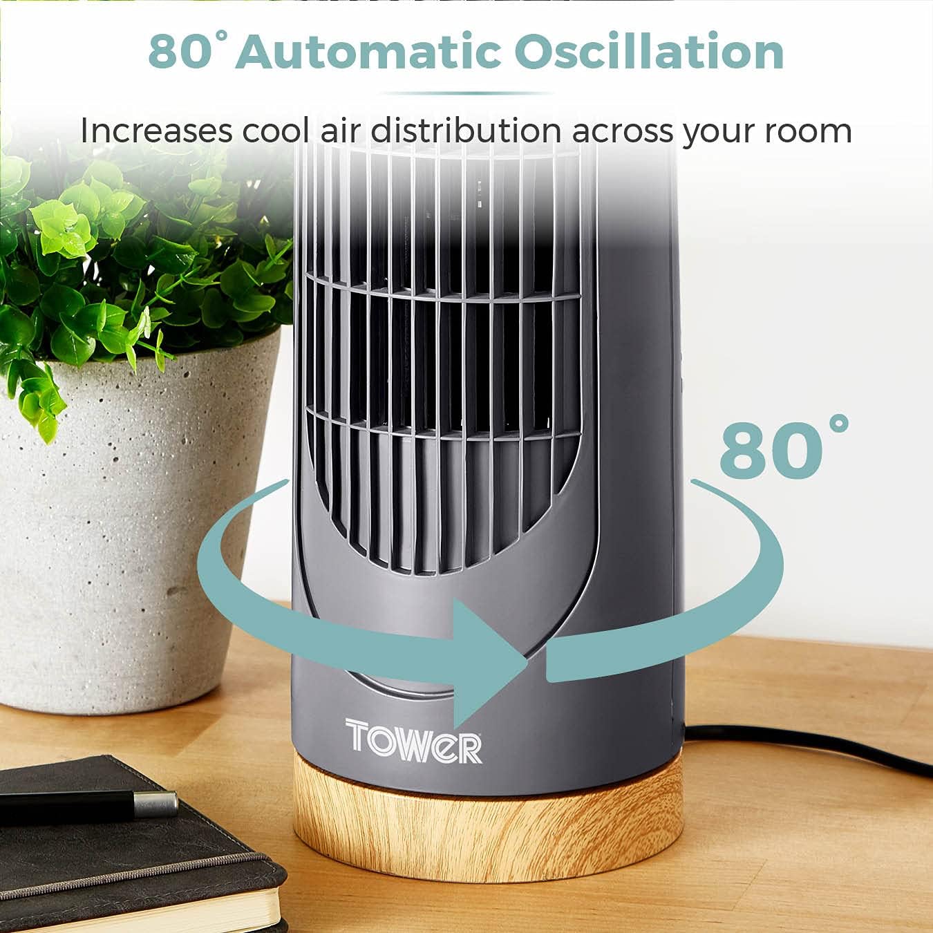 9 reviews for Tower T628000 Scandi Tower Fan with 2-Hour Timer, 3 Speeds, Automatic Oscillation, 14”, 40W, Grey and Wood Effect