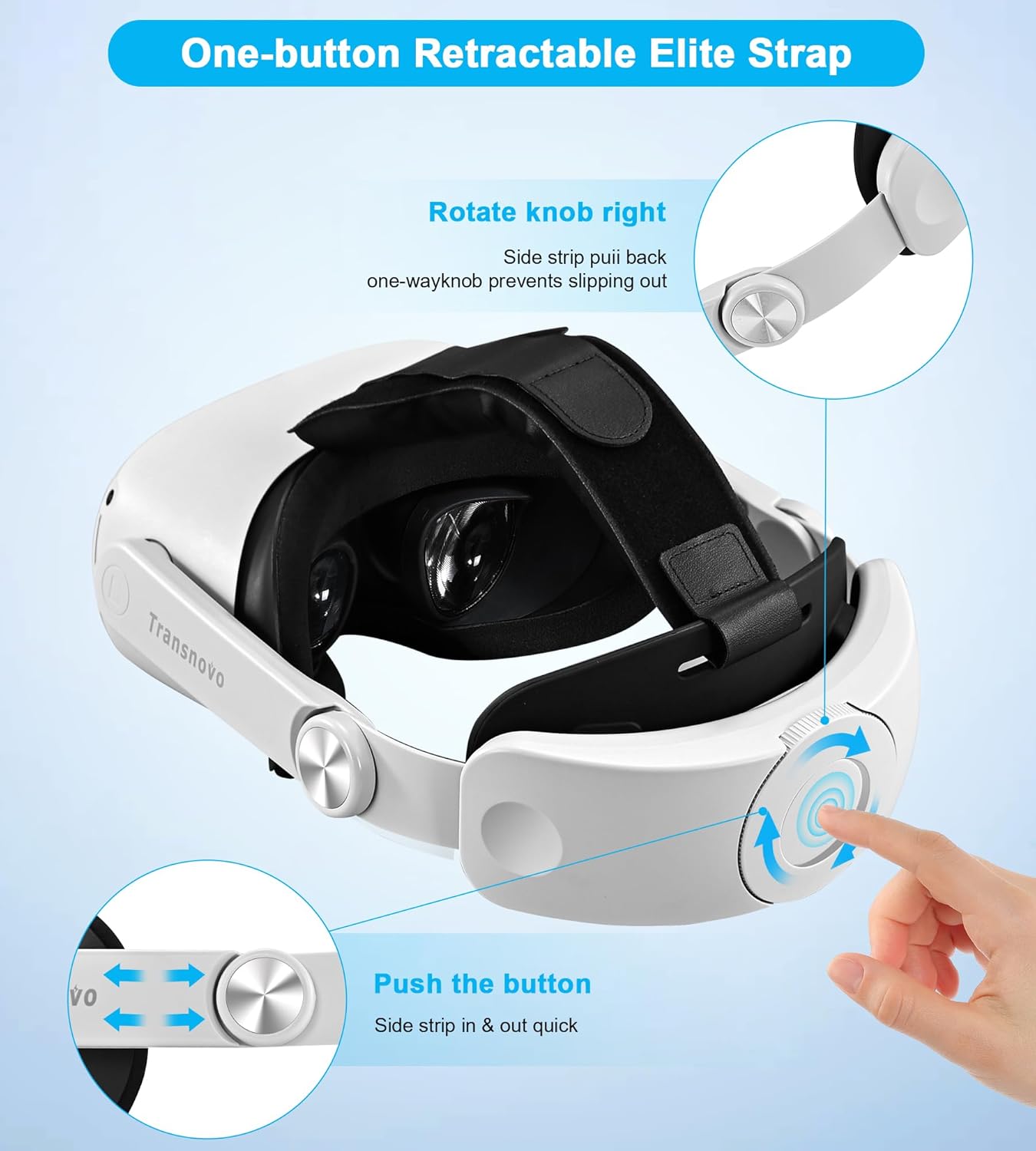 TRANSNOVO Head Strap Compatible with Oculus Quest 2, VR Accessories for Meta Quest 2, One-Button Retractable Elite Strap Replacement for Enhanced Comfort and Reduce Pressure