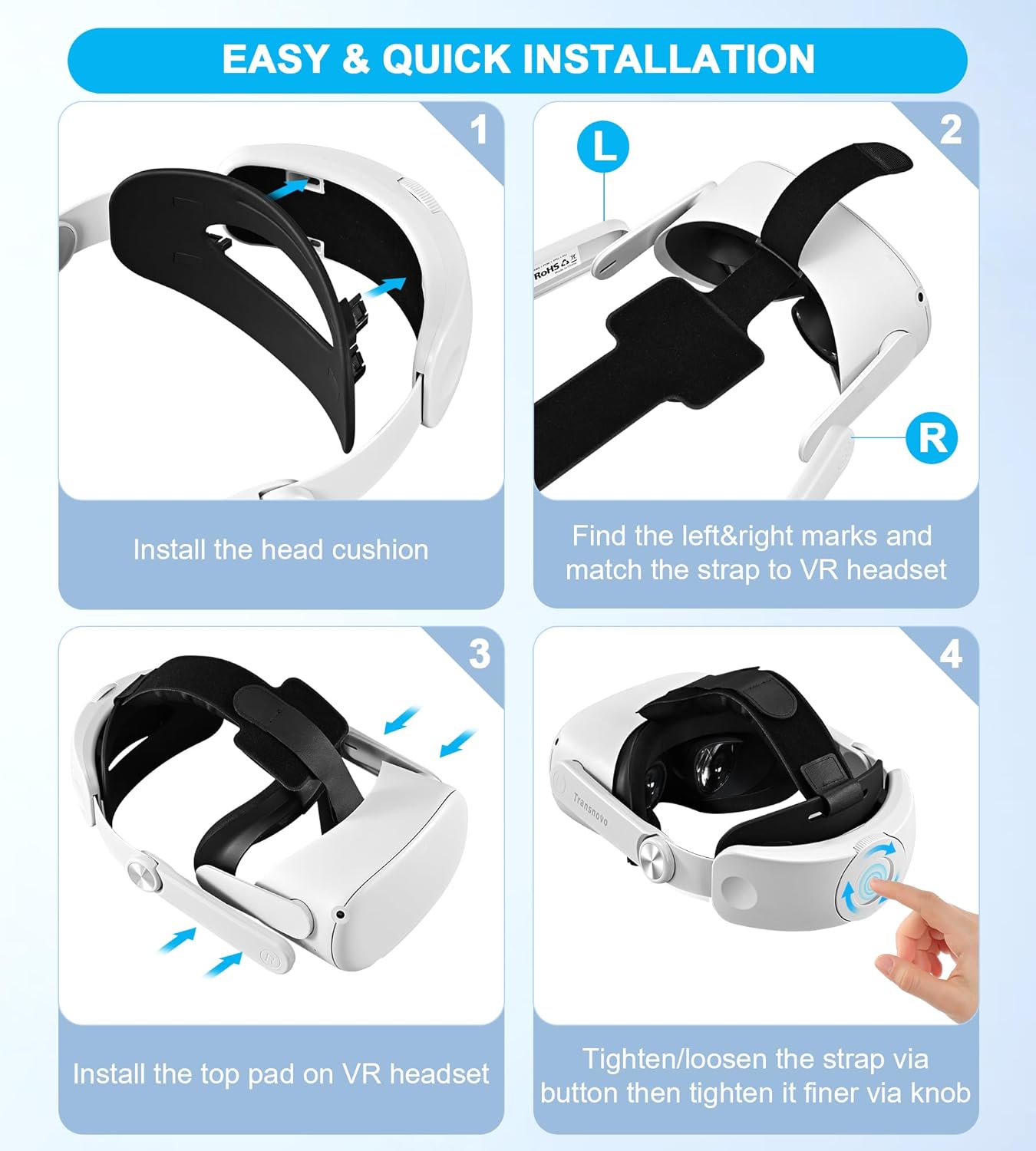【What You Get】Transnovo Comfortable Headstrap, Sponge Velcro, Head Pad, and an industry-leading 2-year warranty (with replacement service for any damage during this period), along with 24-hour friendly customer service.