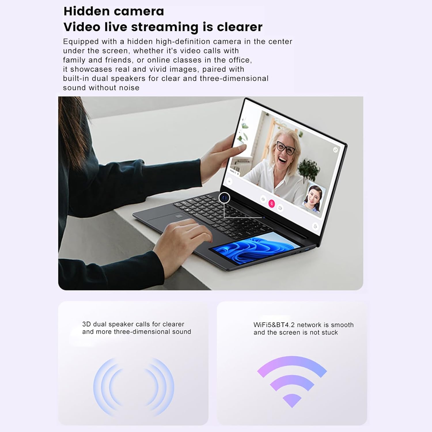 Dual screen -15.6 inch 1920×1080 IPS screen+7 inch 1280×800 touch screen,high color gamut to shock the visual field and restore thedetails of the screen, presenting a comfortable visual experience,Easily switch between multiple modes