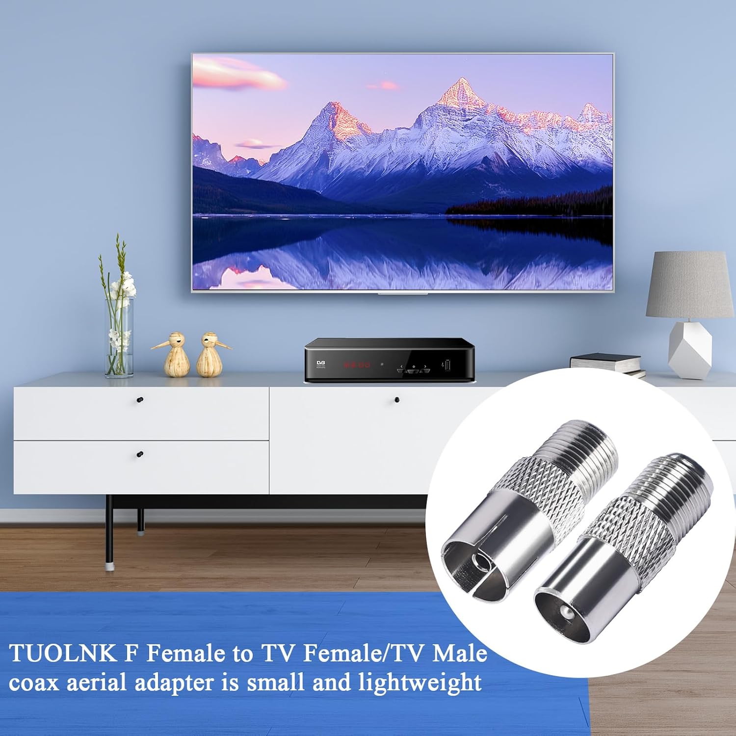 10 reviews for TUOLNK TV Aerial Connector F Female to TV Male Adapter for Aerial & Satellite Cables – 9.5mm Female to F Type Coax Connector – 2 Pack