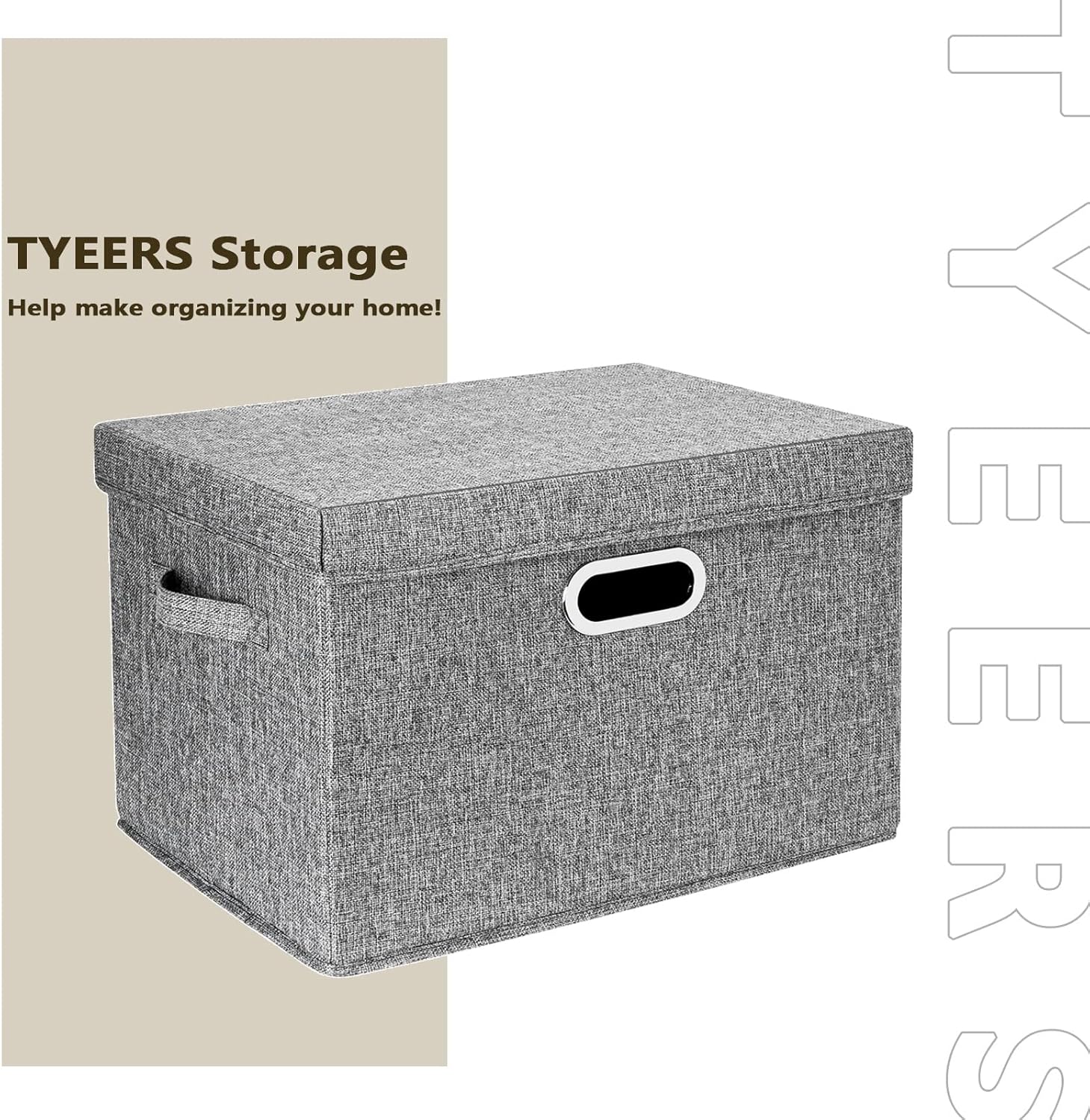 We just went through a basement remodel and had some old cardboard storage boxes from a large Swedish company that were falling apart and we had enough with them. Our desired boxes would a) fit a 12″ height for the storage unit we would be using, b) be made of a neutral fabric, c) have full lids that would easily fit well, d) be sturdy enough for reams of paper, e) have sturdy storage handles to carry and f) have some labeling mechanism. We would be storing a mix of somewhat heavy objects, paper reams, cords and cable, computer parts, etc. The TYEERS boxes covered nearly all our needs except for f, the labeling mechanism. I nearly docked a star for that but I purchased the item knowing it did not have it so that is on me. Overall the units in the short time we have had them have exceeded my expectations and we shopped around across many brands. I’d probably give it a 4.5 star if I could.Plusses- Good height and size. The large worked well for us.- Fabric looks good and we like the color. The black is almost like a dark gray with some variation in the texture- Side handles seem to be sturdy and for us hold a full box of paper- Lid goes on easily and is deep enough to not fall off- Box holds its shape well- While seemingly expensive, it’s comparable to other options I’ve seen and seems to be of better quality.Minuses- No labeling mechanism. I would have loved to see a small sleeve for a label on the front side. We will have to instead attach a paper card on a string to the hole opening.- On one or two of the box fronts there is what appears to be a tiny bit too much fabric or it’s the way the product is filled. It’s not super noticeable and seems to be primarily aesthetic rather than functional.- Lid when removed doesn’t hold its shape. Just a minor issue so when you put the lid back on you have to open the lid shape.