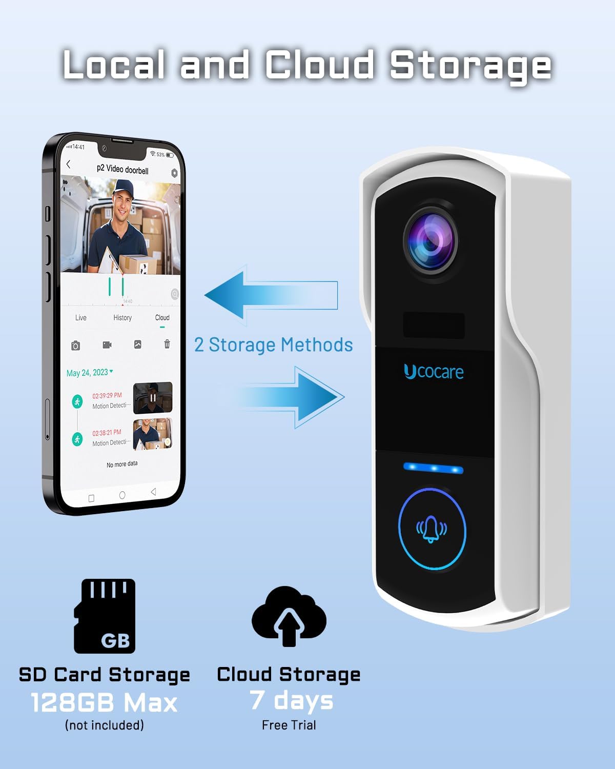8 reviews for UCOCARE Doorbell Camera Wireless with Chime, 2K FHD Video Doorbell Wireless, PIR Motion Detection, Instant Alerts, 2-Way Audio, Night Vision, 2.4G WiFi, IP67, Battery Powered(Black)