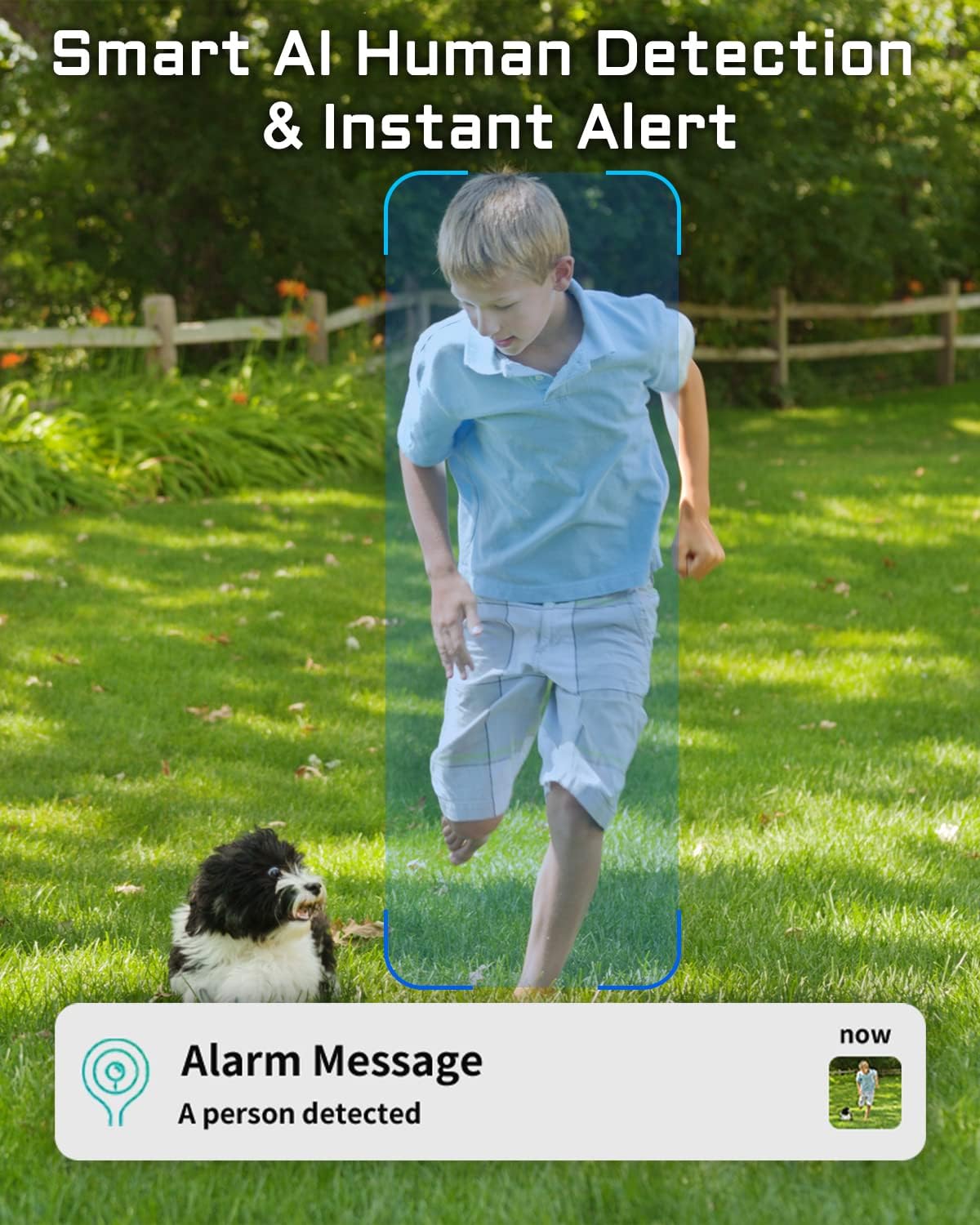 AI Human Detection & Instant Alerts: The intelligent AI motion sensor distinguishes people from irrelevant objects, reducing false alarms by up to 95%. Receive instant notifications on your smartphone when someone is at your door or rings the bell.