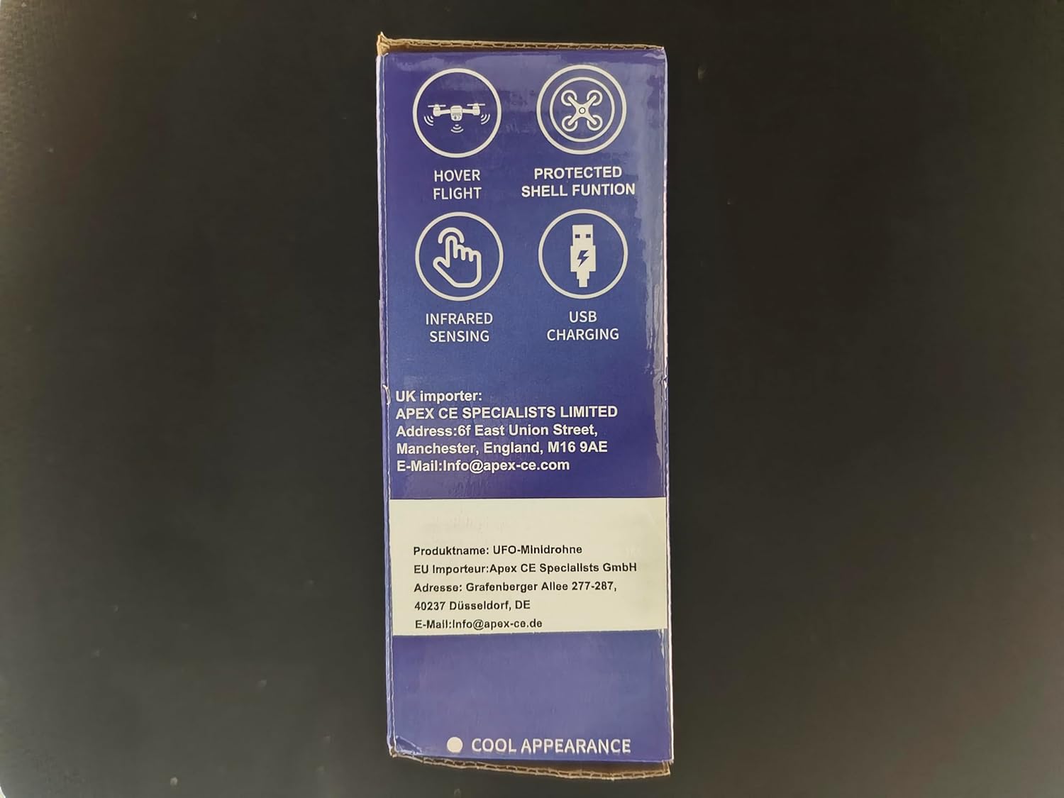 This ufo drone works. No doubt. It flies around. Really cool when it starts to spin and the light illuminates on the ceiling. It does avoid banging on walls and ceiling most of the time. It responds well when you bring your hands close to it.But it is limited. In an open space, it tends to wonder around and fly up high. Very hard to reach. In small spaces, it struggles. It flies around very erraticly. It bangs on many things. Because it flies for around 4-5 minutes, the fun ends rather quickly. Beyond look at it and try to make it move to where you would like it, get boring fast.The build quality is very good. Mainly because it is robust. The top is flexible, minimising any knocks or impact. It comes with micro usb. Which is annoying. Very dated cable. Most of my items are usb type C. Sad they couldnât upgrade the charging port.