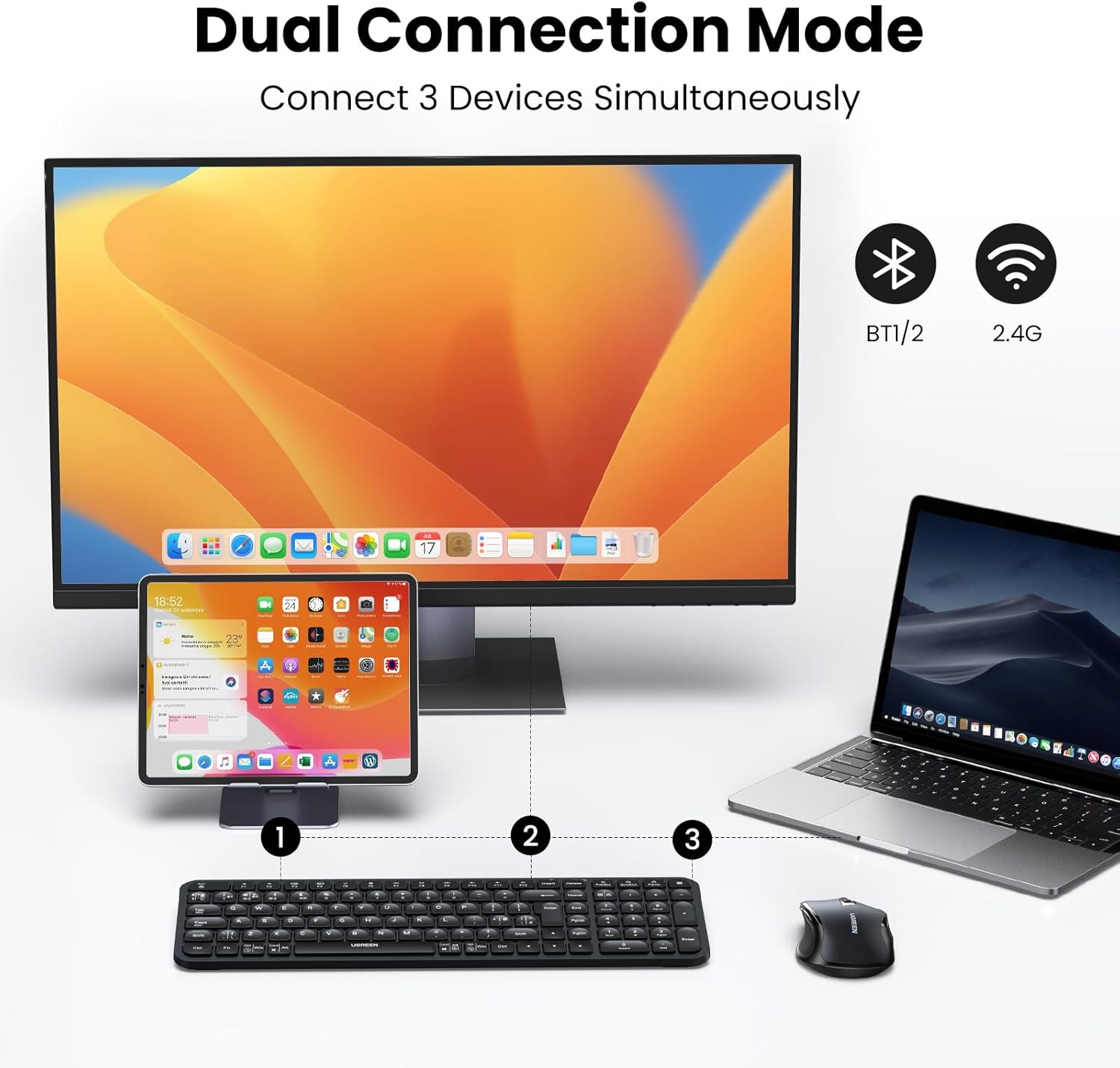 UGREEN Wireless Keyboard and Mouse Set, Bluetooth 5.0 and 2.4G Ergonomic Wireless Keyboard, Silent 4000 DPI Mouse, Multimedia Hotkeys for PC/Laptop/Windows/Mac/Chrome/Linux, QWERTY UK Layout