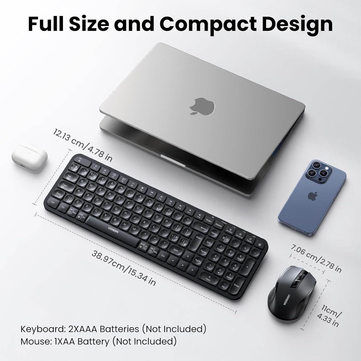 8 reviews for UGREEN Wireless Keyboard and Mouse Set, Bluetooth 5.0 and 2.4G Ergonomic Wireless Keyboard, Silent 4000 DPI Mouse, Multimedia Hotkeys for PC/Laptop/Windows/Mac/Chrome/Linux, QWERTY UK Layout
