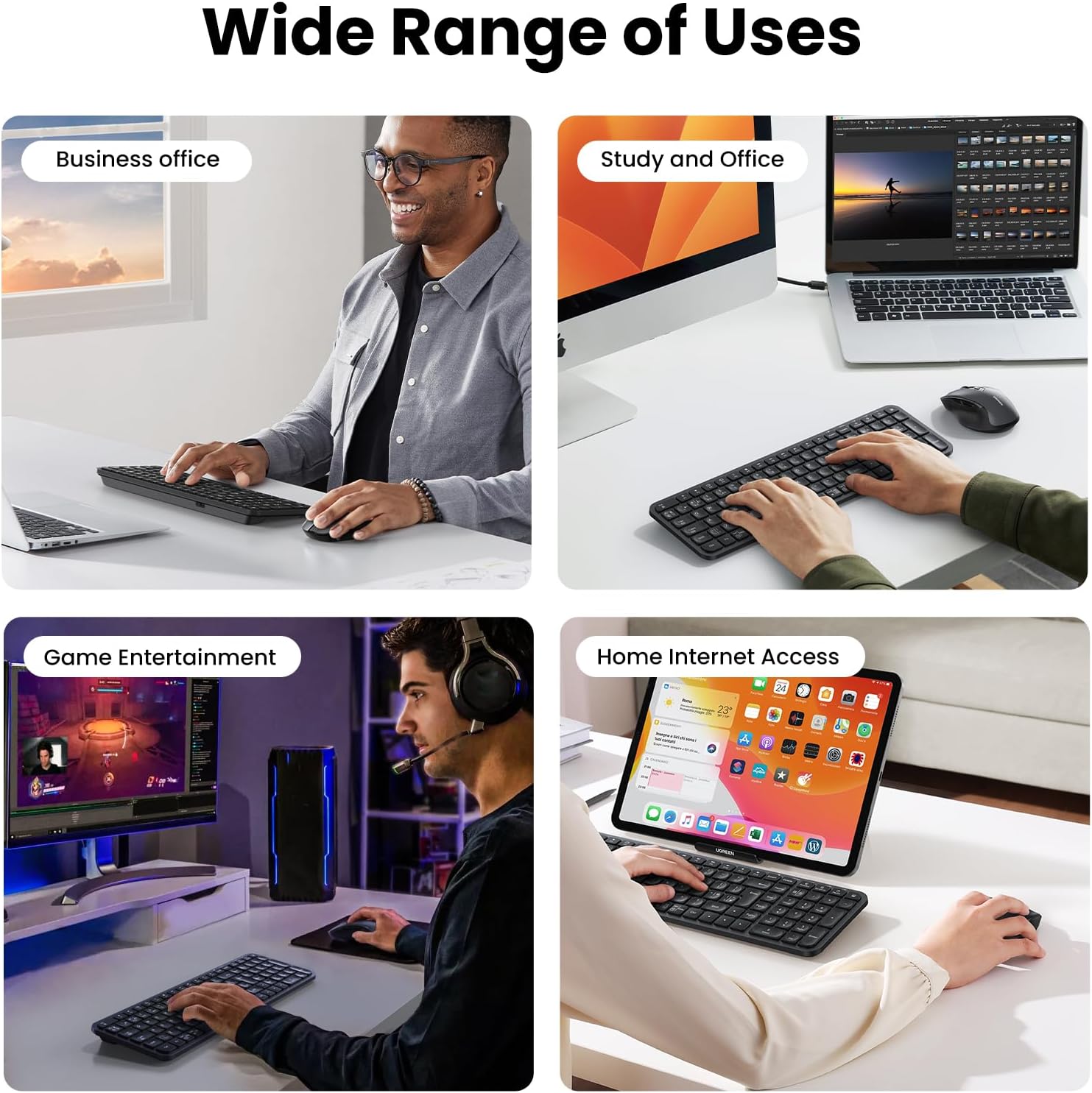 Wide Compatibility: The silent wireless keyboard and mouse set are compatible with multiple operating systems, such as Win 11/10/8.1/7, Linux, Chrome OS, macOS 10.5, Android 5.0, and above. The Keycaps are all natively supported for Windows and macOS systems. Perfect for business travel, offices, homes, libraries, and many public places.