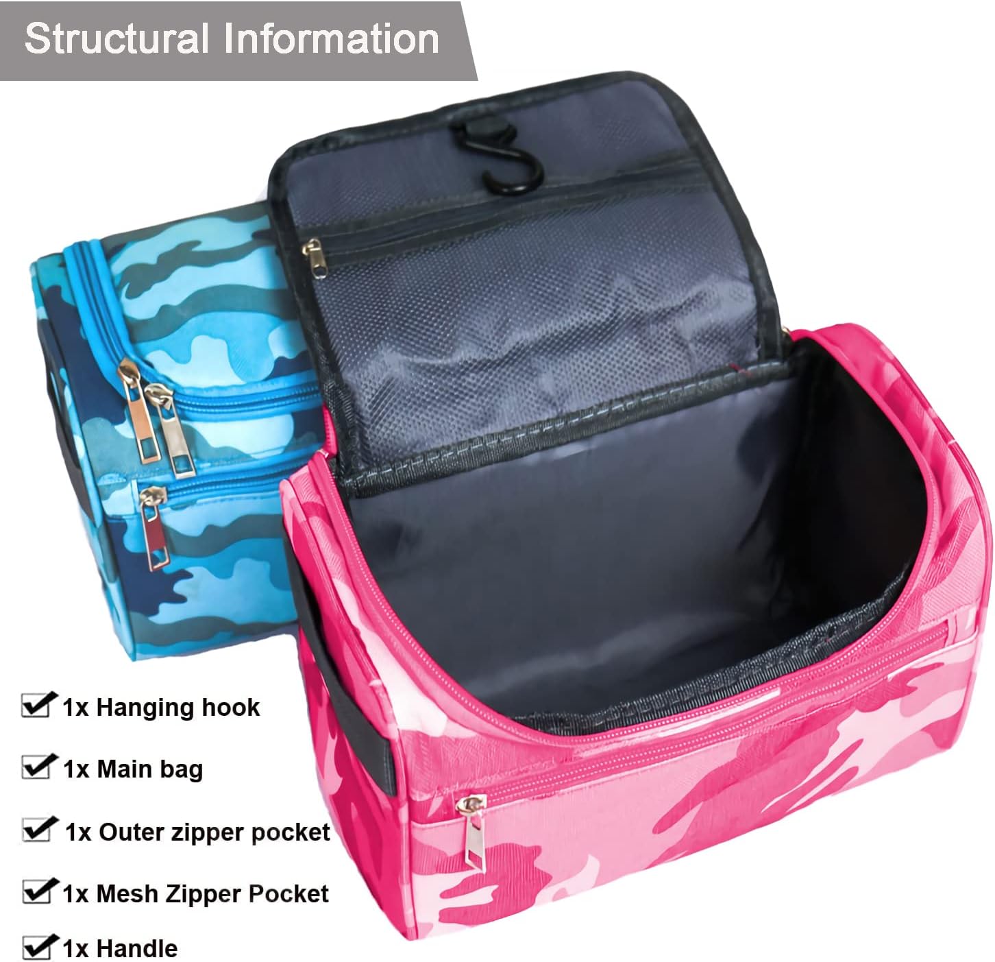 Make traveling a little less chaotic with our water-resistant camouflage toiletry bag. It is durable and easy to organize what you need for vacation or business trip.Reinforced hook and carrying handle allow to be hung up on towel rack, shower rod, or door handles conveniently. With secure zipper closure, your items will be organized well and protected safely.These bags are easily stored inside any luggage and keeps the items in it protected and organized.Planing for a weekend get away or a longer vacation? This fit all lengths and types of vacation.This loyal carrier bag for toiletry or other accessories will be suitable for the gym, car, boat or any place you need to keep them tightly stored and ready for use in an instant. Material: Made of high quality polyester fibre. Abrasion-resistant and durable. Size: 25*15*14cm (9.84″ * 5.9″ * 5.5″) Color: Red camouflage, blue camouflage