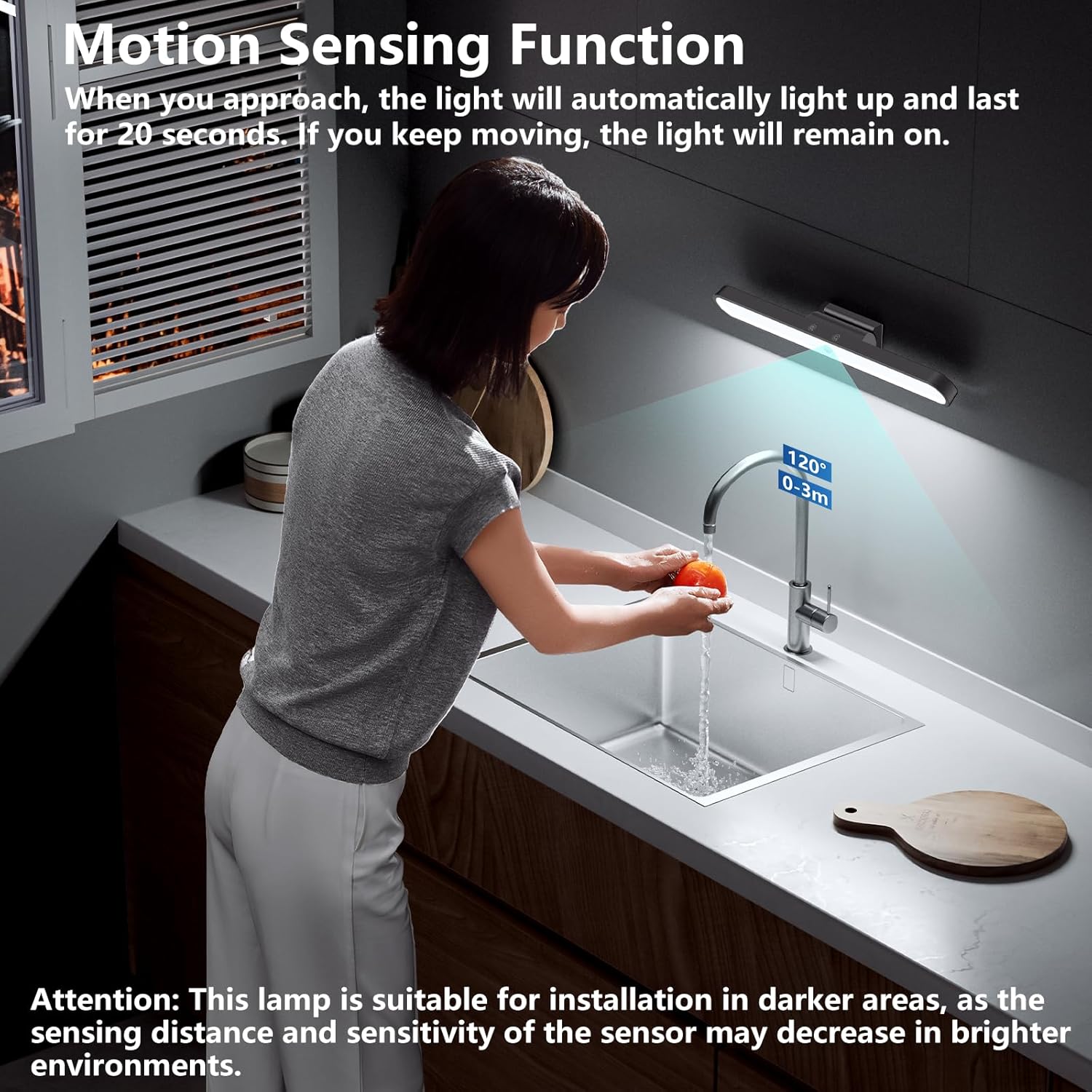 Adjustable brightness and colour temperature: the under cupboard kitchen lights with a brightness of up to 200 lm makes it super bright in any environment. Led light supports brightness adjustment between 10% and 100%. In addition, light bar also supports switching from three colour temperatures (3000K/4500K/6000K), suitable for kitchen, cabinet, table, dresser, mirror, screen, bathroom, painting lamp, wall.