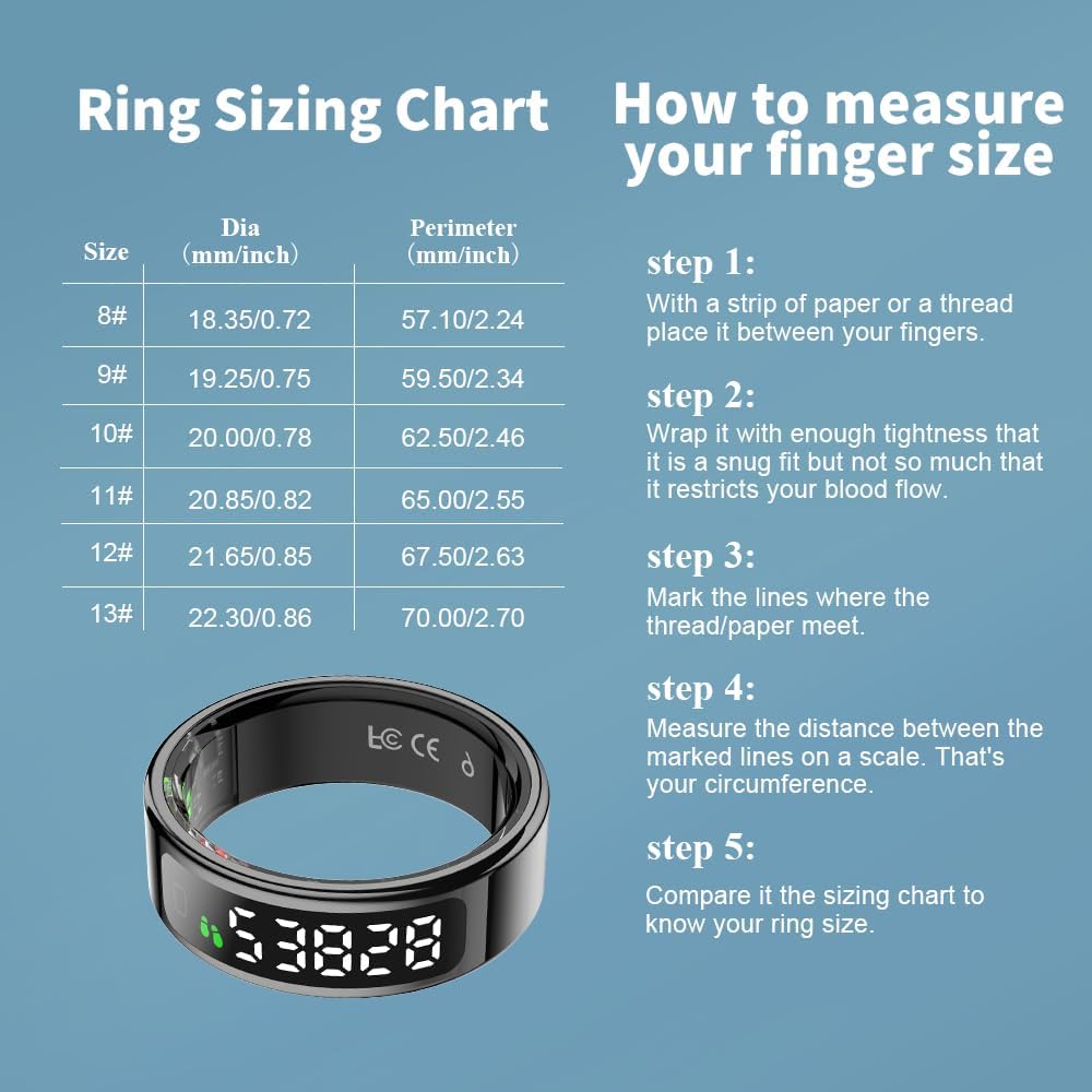 【All-in-One Health Monitoring Smart Ring】 Track blood pressure, SpO2, heart rate & sleep stages (deep/light) in real-time. This unisex health ring provides 24/7 wellness insights with medical-grade accuracy – your personal health guardian.
