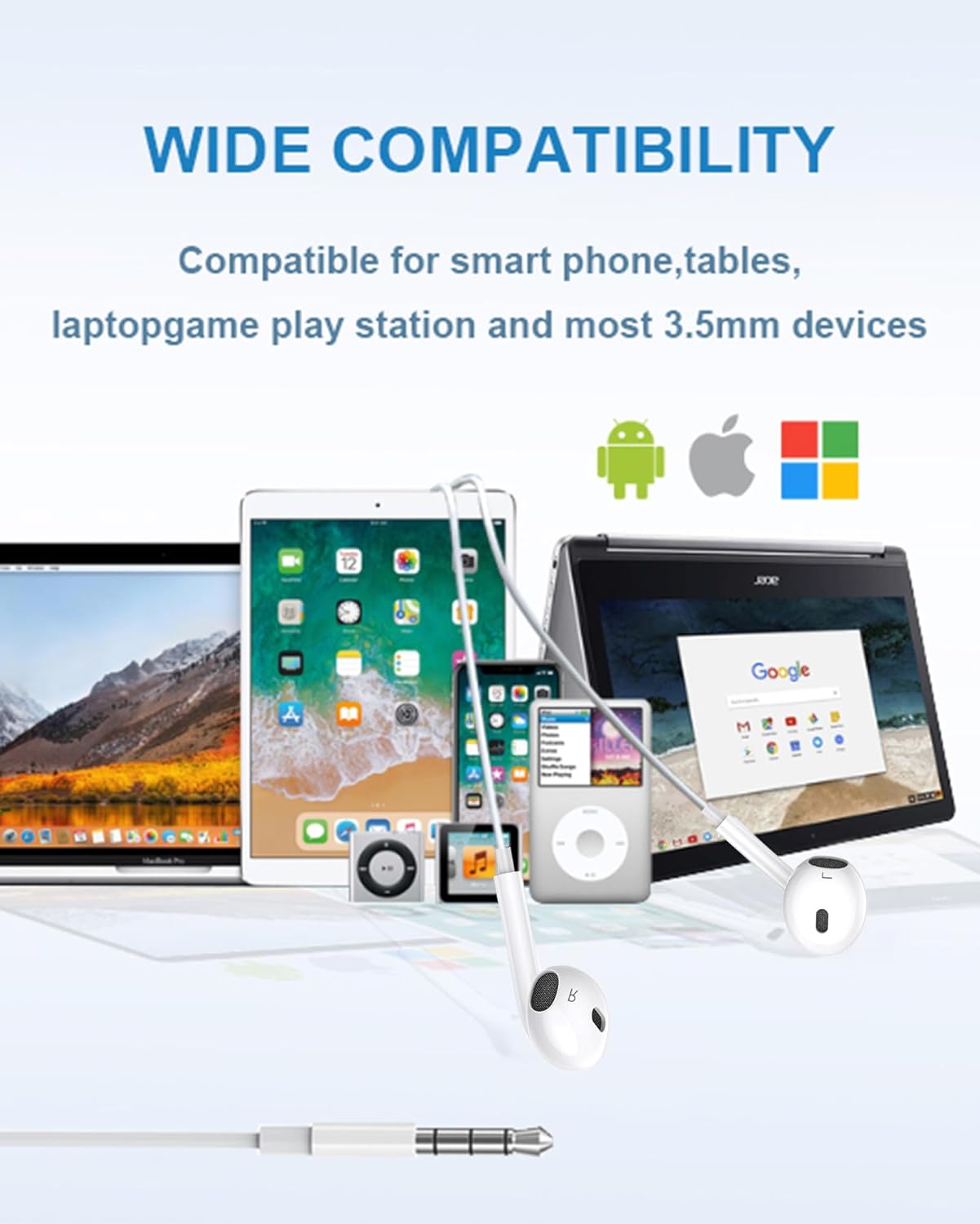【In-Ear Headphones】: The Earphones feature a 3.5mm gold-plated plug, a durable cable, and a powerful cable that is the perfect match between lossless sound transmission and extreme durability. earphones cord is made of soft and flexible TPE material and is enhanced to make it more wear-resistant and corrosion-resistant.