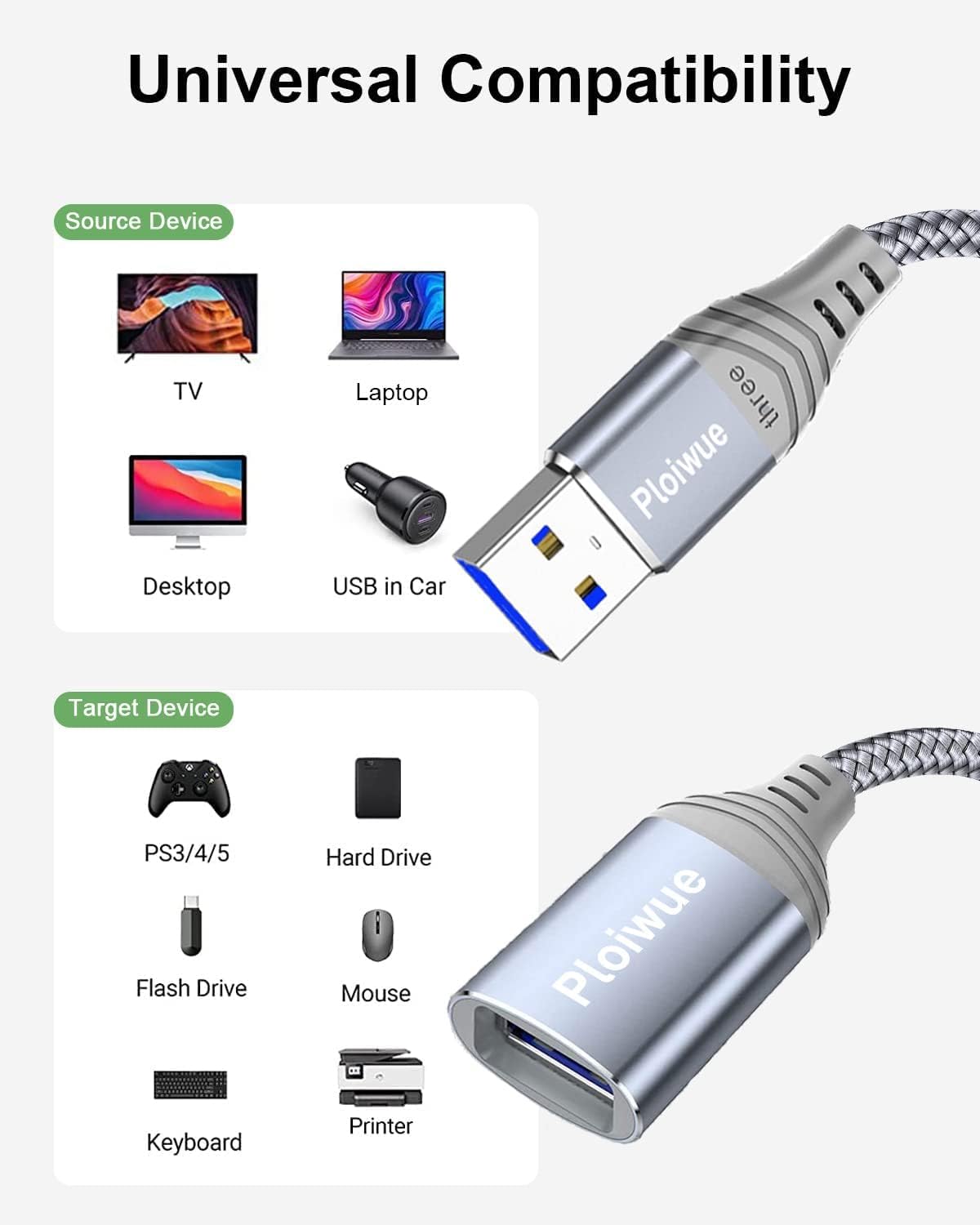 [Excellent Customer Service] Ploiwue provides two 3m3m perfect length USB extension cables, an 18 month warranty, and friendly 24/7 customer service. If you have any questions, please feel free to contact our customer service.