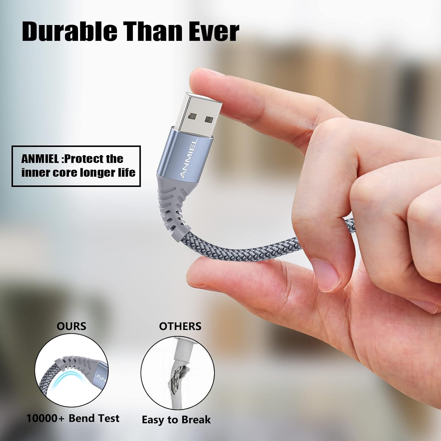 【Anti-Break Construction】ANMIEL usb c charger cable Built with double-braided nylon and reinforced with a stylish aluminum housing and SR joint, our Type C charging cables are tested to withstand 10,000 bends, and 100N tension, so you can rely on our cables everytime.