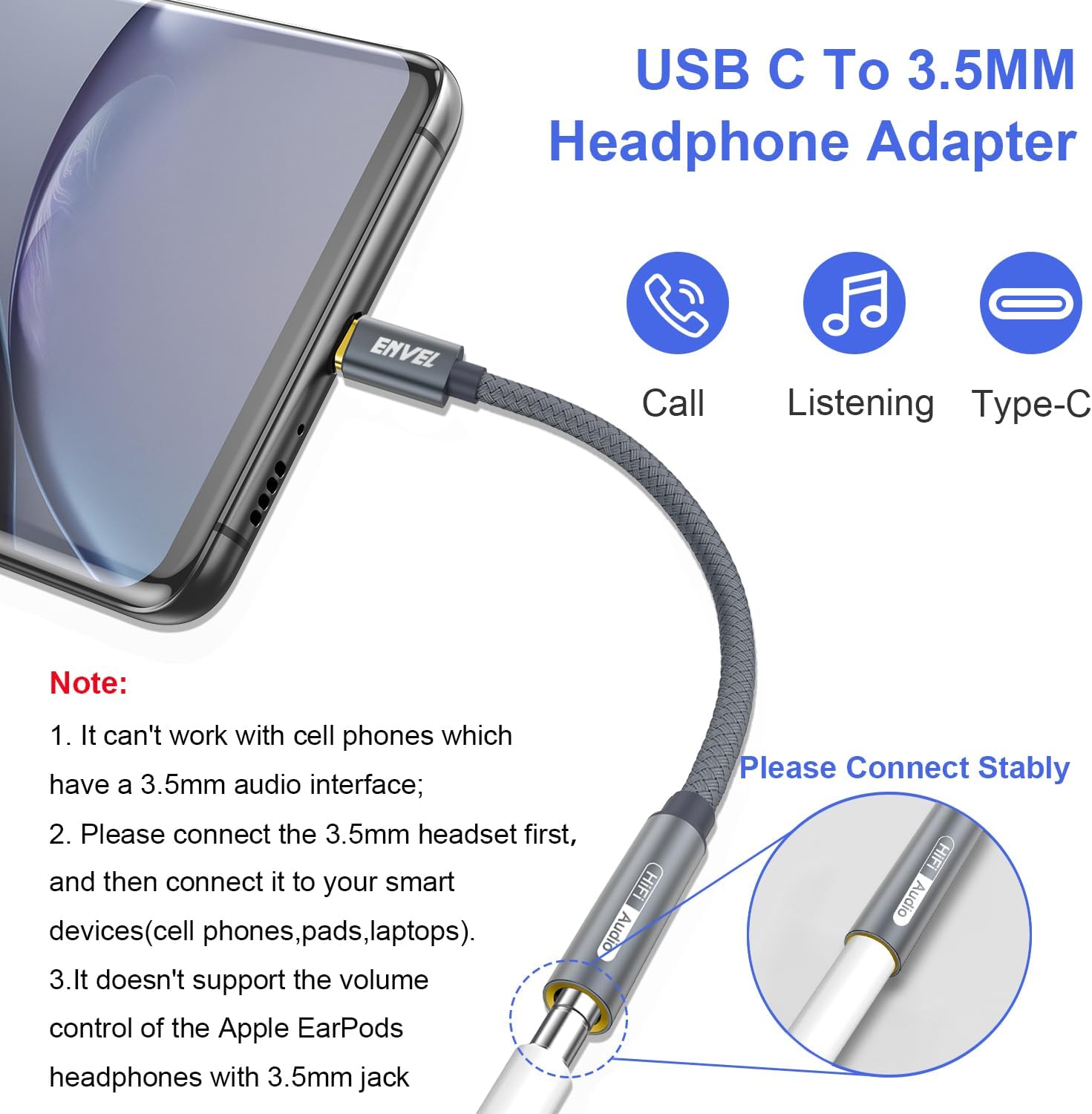 2-Pack Type-C to 3.5mm Stereo Cable: This USB C to 3.5mm headset adapter is specially designed for your new USB C smartphone without a headphone audio jack. You can proceed volume control, pause and play functions without unlock your phone.