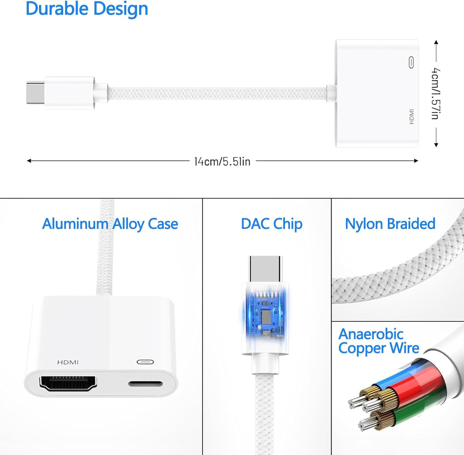 Widely Compatibility: The for USB-C to HDMI adapter is widely compatible with Phone 16/16 Plus/16 Pro/16 Pro Max、Phone 15 Pro/15 Pro Max、MacBook Pro/Air、Pad Pro/Air/Mini、Galaxy S23 and other USB C devices.