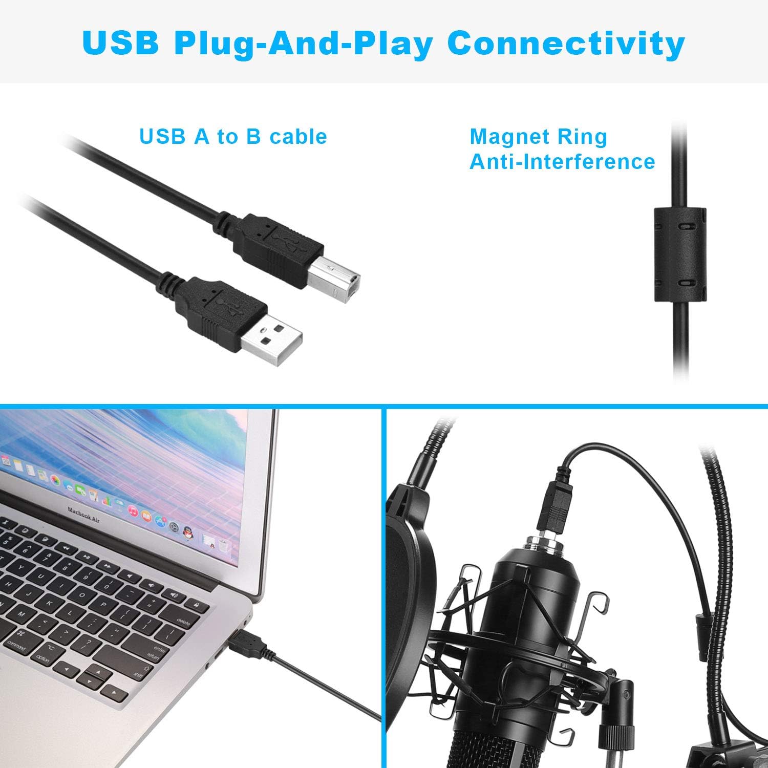 ELECTRET CONDENSER TRANSDUCER & MAGNET RING: With 14mm electret condenser transducer, the USB mic provides you with a strong bass response. This condenser mic is used for making crystal clear audio. Additionally, there is a strong anti-interference function on the magnet ring of this USB mic cable, giving you a different experience of sound effect.