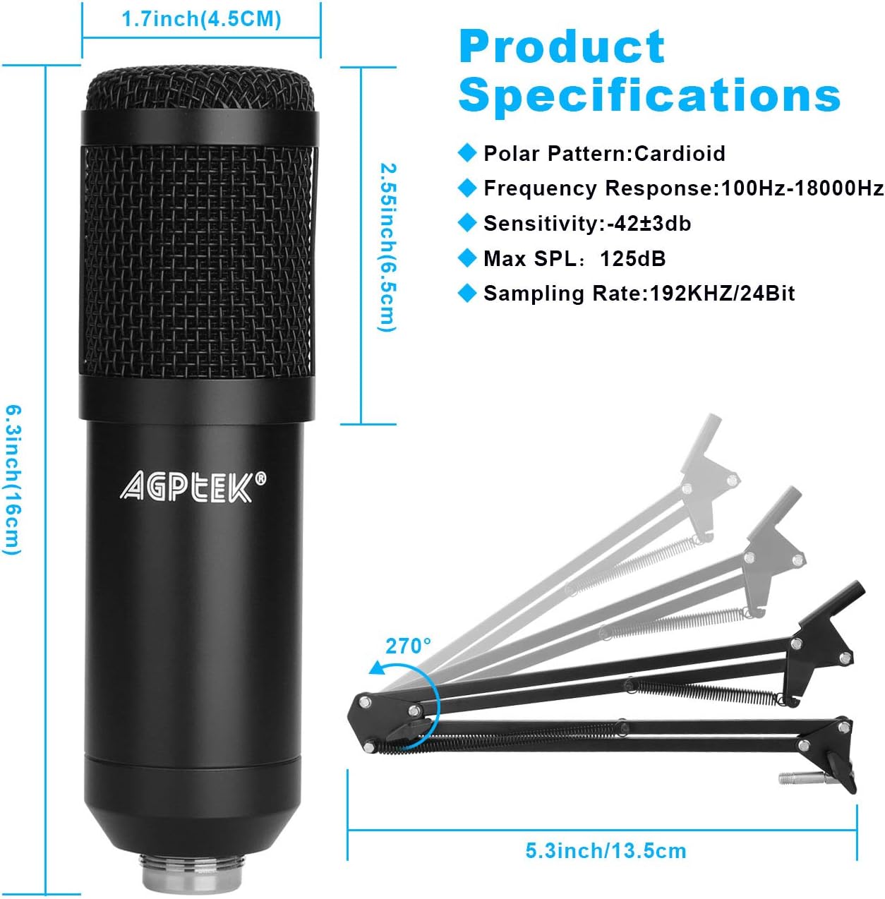 13 reviews for USB Microphone Kit, AGPtEK 192KHz/24Bit USB Condenser Studio Podcast Microphone with Scissor Arm Stand, Metal Shock Mount, Pop Filter, Mounting Clamp, Metal Tripod, Mic Windscreen & Cable