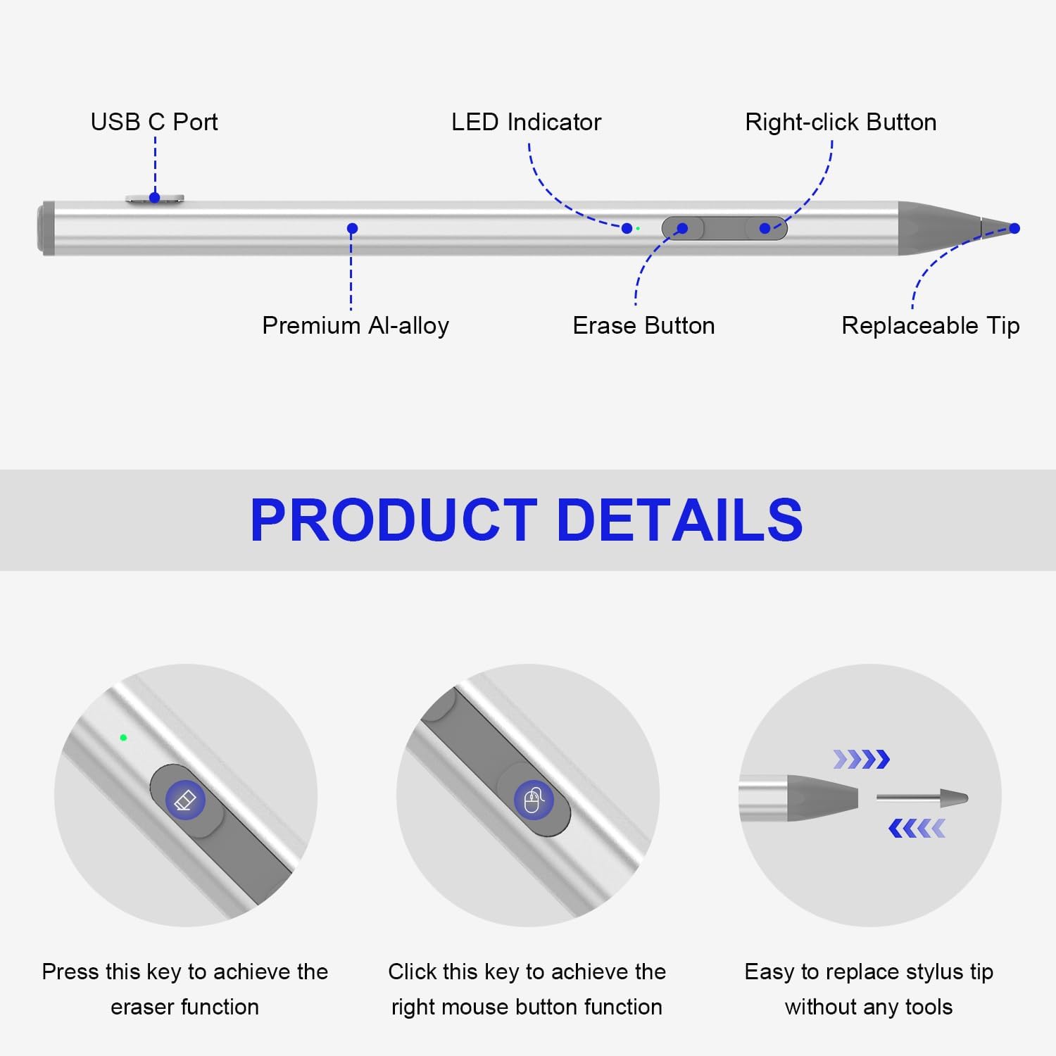 Replaceable tip: The chromebook pen tip is replaceable and easy to replace. (3 replaceable pen tips are included in the package)