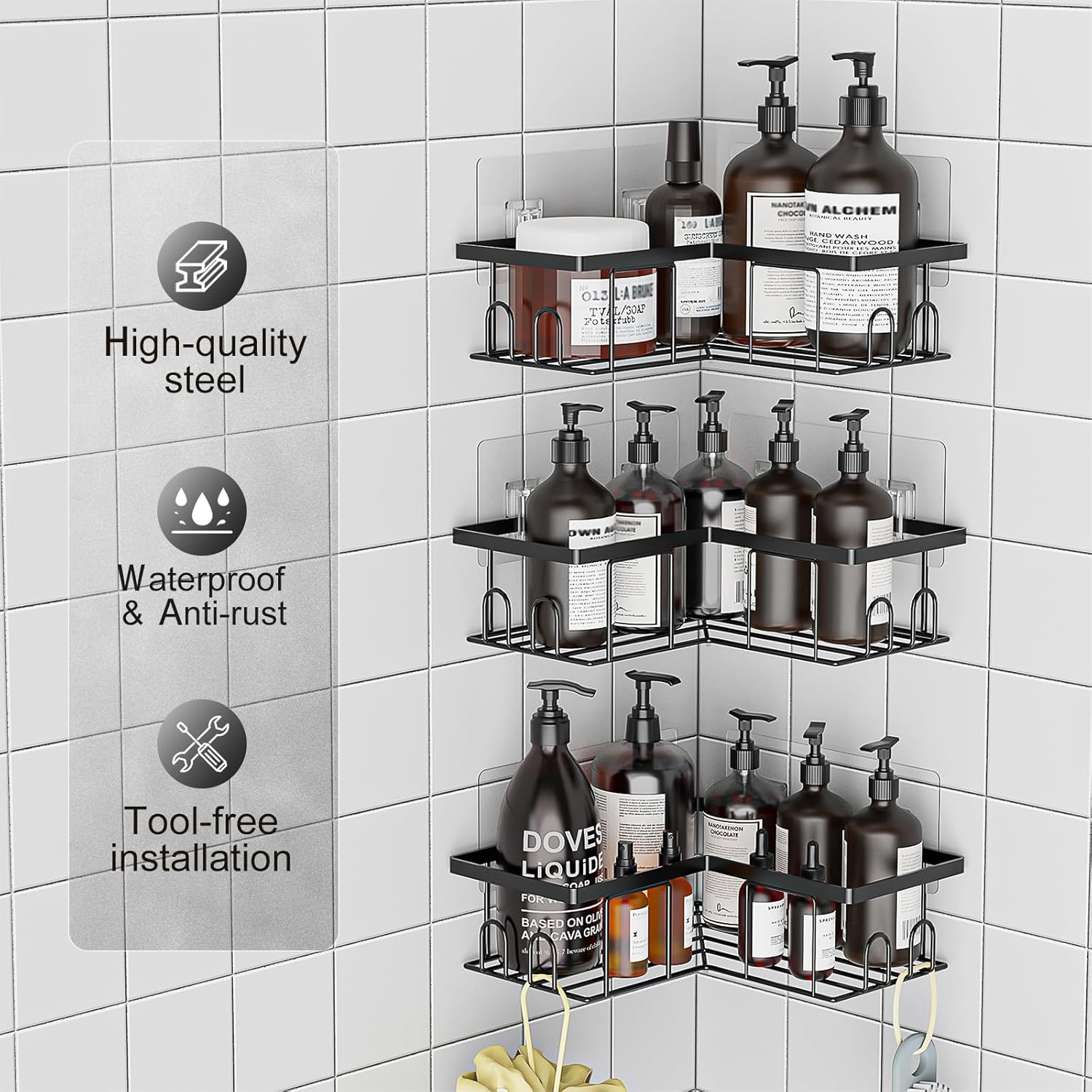 13 reviews for UUlioyer Corner Shower Caddy 3-Pack, Shower Shelf No Drilling, Bath Storage with Hooks for Bathroom, Black