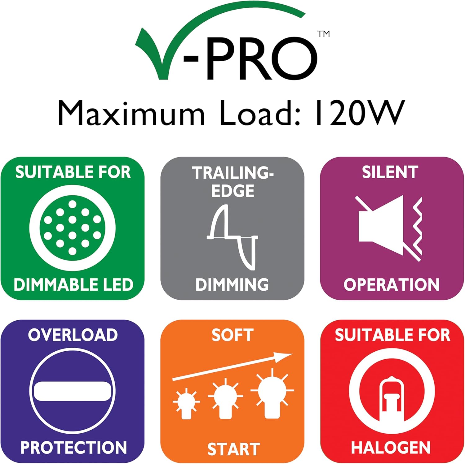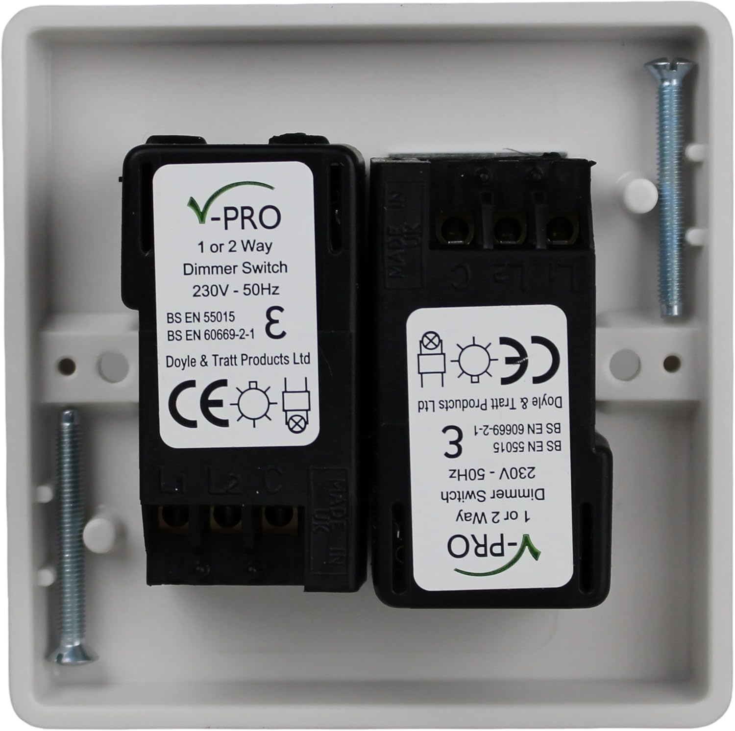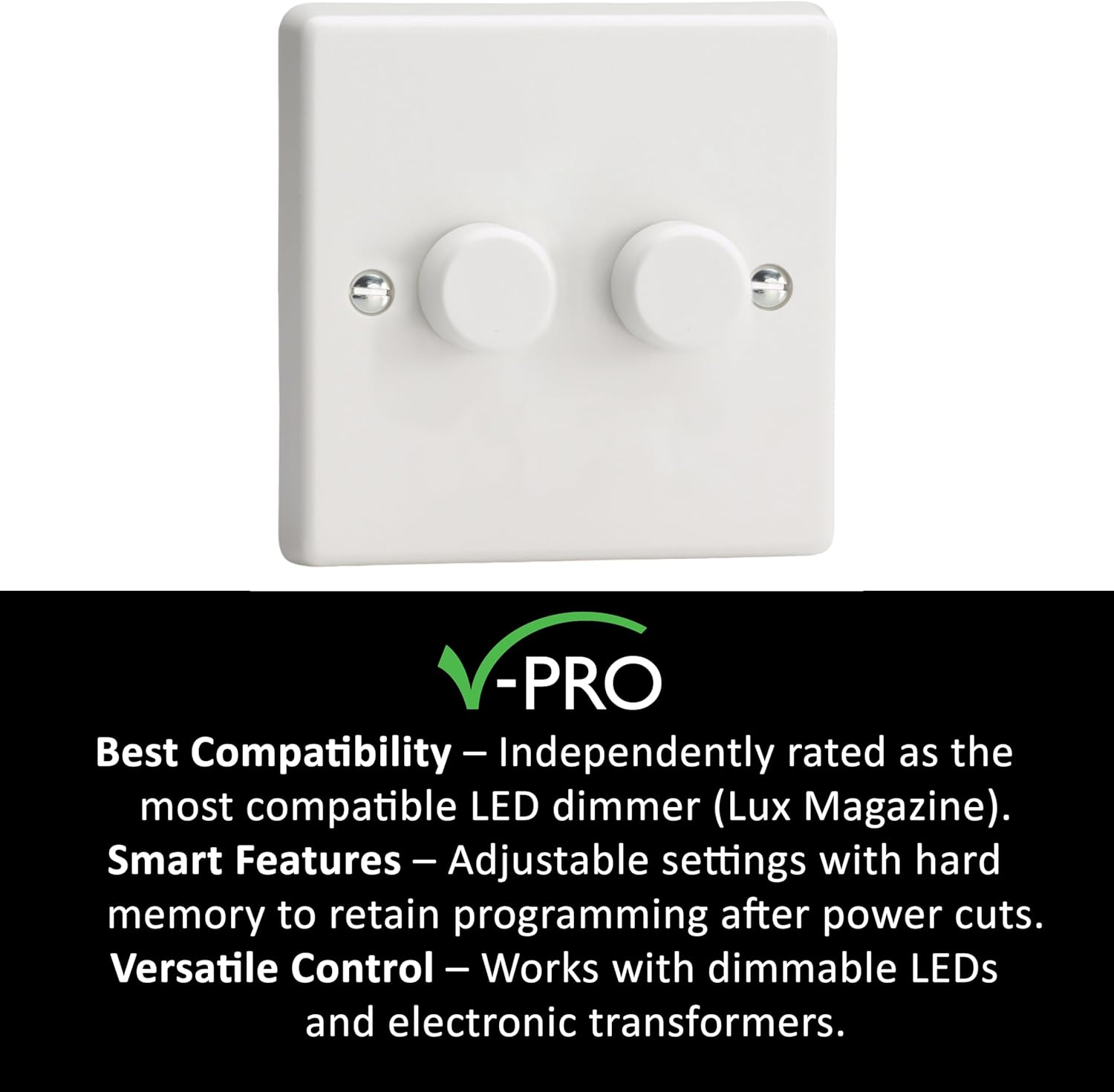 Varilight Classic White, LED Dimmer Switch – V-Pro Series, 2 Gang (Single), 1 or 2 Way, 250 Watt (Trailing Edge)