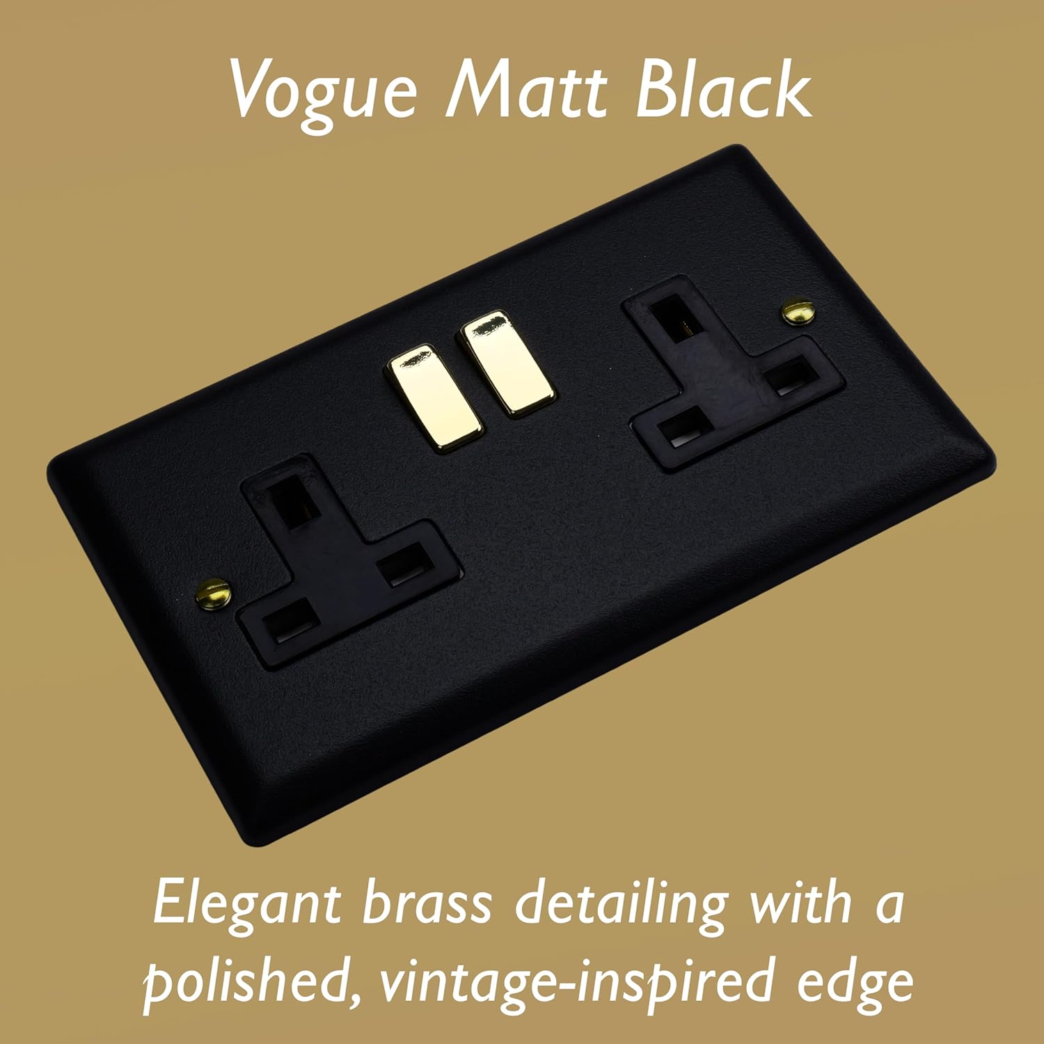 Varilight Double Switched Socket – Vogue Matt Black With Polished Brass/Black Insert