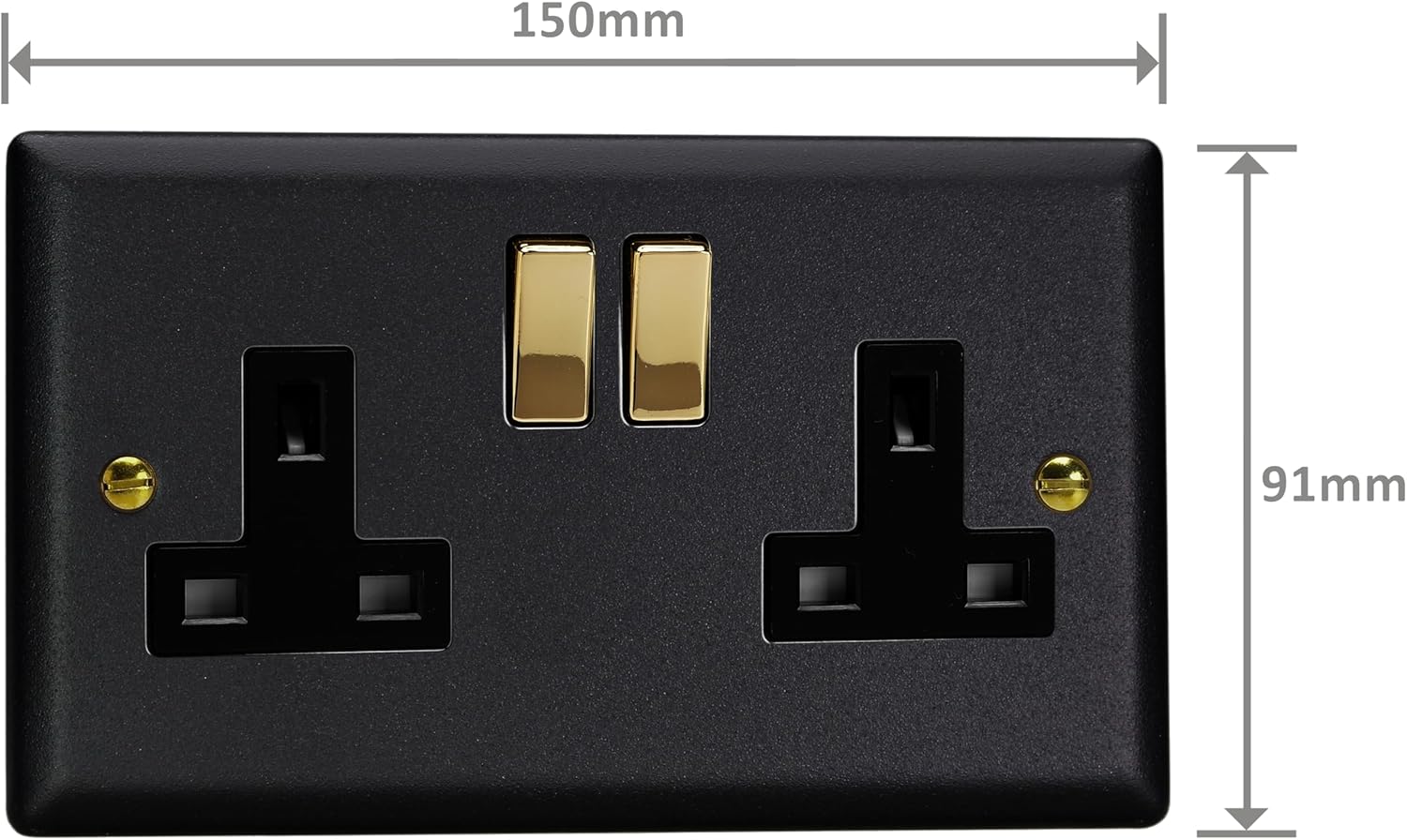 2 reviews for Varilight Double Switched Socket – Vogue Matt Black With Polished Brass/Black Insert