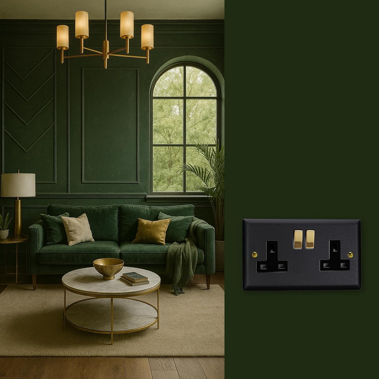 A touch of luxury – matt black switches, sockets and dimmers with brass detailing, made in Britain
